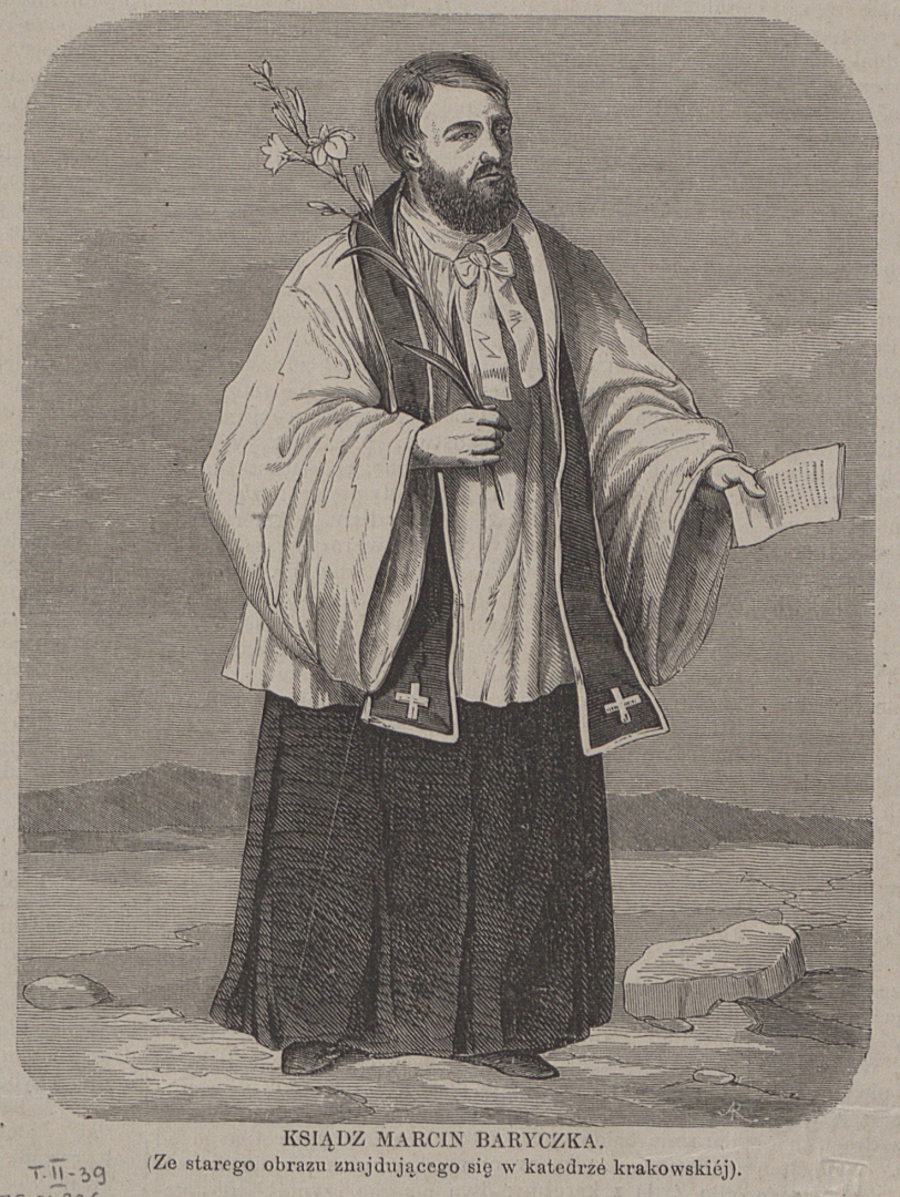 "Ksiądz Marcin Baryczka". share Podziel się facebook google + twitter linkedin clipboard envelope print quote picture add × Cytowane źródła Cytowanie źródła on-line, czyli Internetowego Polskiego Słownika Biograficznego "Ksiądz Marcin Baryczka"., [online] Warszawa: Narodowy Instytut Audiowizualny [dostęp 27.02.2026]. Dostępny w internecie: http://www.biogramy.pl/a/foto/ksiadz-marcin-baryczka Cytowanie wydania drukowanego, czyli Polskiego Słownika Biograficznego , "Ksiądz Marcin Baryczka"., [w:] Polski słownik biograficzny, t. , IPSBID: ipsb-fo-110013 × Wyślij link do strony E-mail odbiorcy wiadomości: To pole jest wymaganeWpisz poprawny adres e-mail Twój adres e-mail: To pole jest wymaganeWpisz poprawny adres e-mail Podgląd wiadomości, która zostanie wysłana: Witaj, [Tutaj podany Twój e-mail] poleca Ci treść z iPSB (internetowym Polskim Słowniku Biograficznym) "Ksiądz Marcin Baryczka". × Dodaj do kolekcji wybierz kolekcję, do której chcesz dodać ten artykuł: lub wpisz nazwę nowej kolekcji, do której chcesz dodać ten artykuł: : To pole jest wymagane Dodaj do kolekcji Wybierz kolekcję Swoje kolekcje znajdziesz w profilu. Wystarczy kliknąć ikonę zębatego koła w górnym prawym rogu. Możesz je zobaczyć tu: moje kolekcje. × Dodaj do kolekcji Element został dodany do Twojej kolekcji. Swoje kolekcje możesz zobaczyć tu: moje kolekcje. × Dodaj do kolekcji Aby dodawać materiały do kolekcji musisz się zalogować. OPIS POSTACI POWIąZANE Rycina autorstwa Aleksandra Regulskiego, wykonana "ze starego obrazu znajdującego się w katedrze krakowskiéj", opublikowana w: "Tygodnik Ilustrowany" 1864, nr 228 s. 52. W zbiorach Biblioteki Narodowej w Warszawie. Źródło kopii cyfrowej: POLONA.pl Postaci powiązane Marcin Baryczka brak danych - 1349-12-13 kaznodzieja Aleksander Tadeusz Regulski h. Rawicz 1839-10-28 - 1884-11-15 rytownik więcej >> Zobacz zdjęcie w najwyższej jakości Źródło