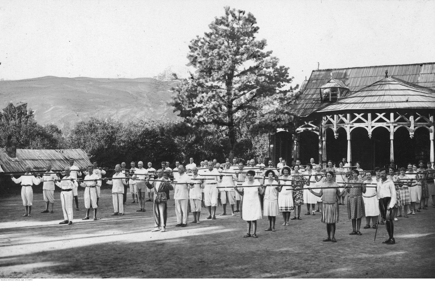 Kuracjusze podczas gimnastyki w lecznicy doktora Apolinarego Tarnawskiego w Kosowie Huculskim w 1931 roku., [online] Warszawa: Narodowy Instytut Audiowizualny [dostęp 01.04.2026]. Dostępny w internecie: http://www.biogramy.pl/a/foto/kuracjusze-podczas-gimnastyki-w-lecznicy-doktora-apolinarego-tarnawskiego-w-kosowie-huculskim-w-1931-roku