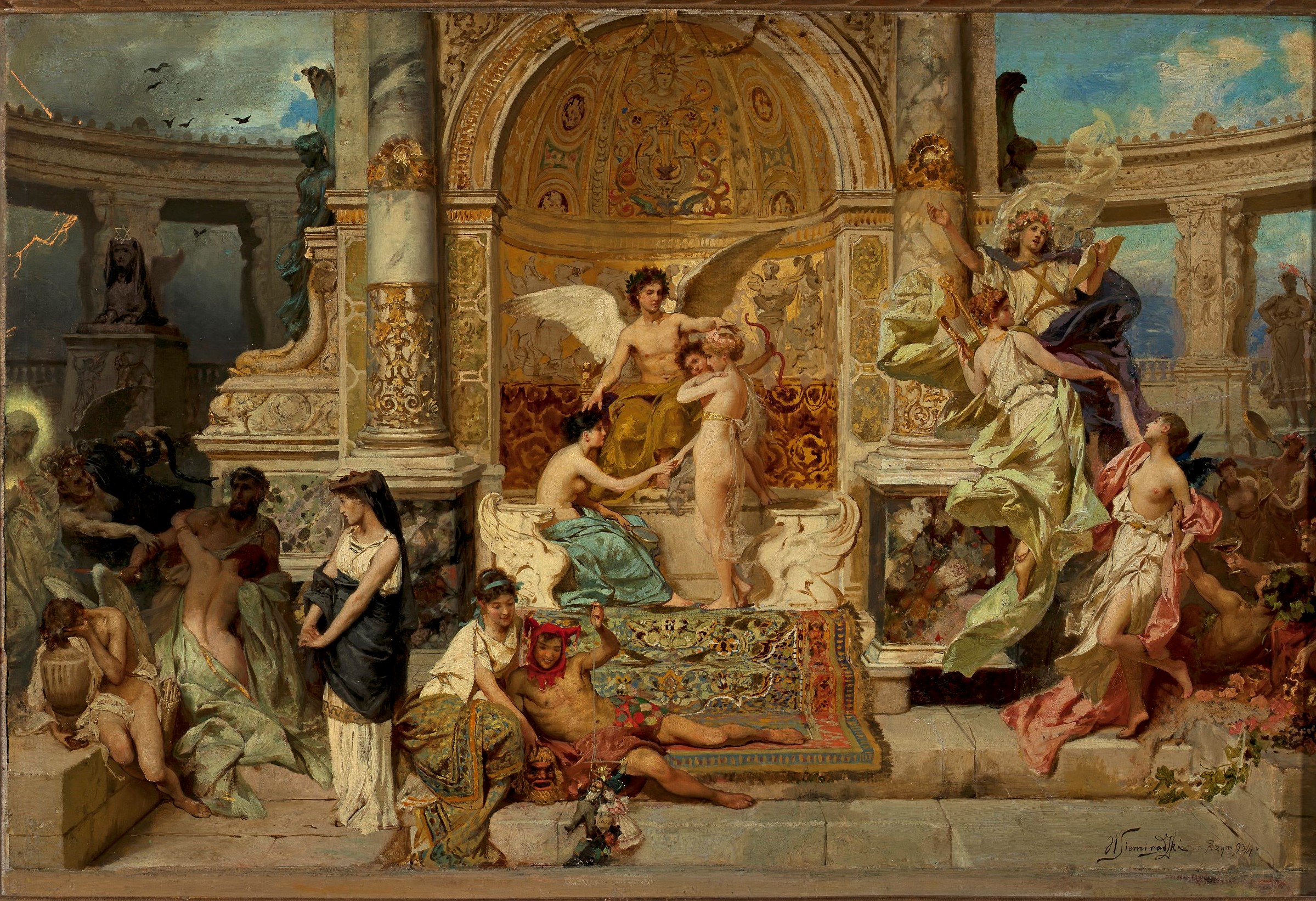 "Kurtyna teatru krakowskiego, szkic" Henryka Siemiradzkiego., [online] Warszawa: Narodowy Instytut Audiowizualny [dostęp 01.03.2026]. Dostępny w internecie: http://www.biogramy.pl/a/foto/kurtyna-teatru-krakowskiego-szkic-henryka-siemiradzkiego