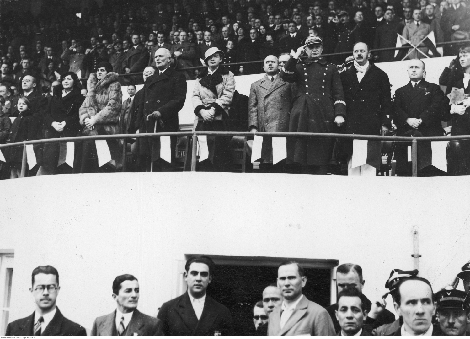 Widoczni m.in.: prezes Polskiego Związku Piłki Nożnej generał Władysław Bończa-Uzdowski (w mundurze), wicemarszałek sejmu Karol Polakiewicz (stoi na górze 3. z prawej), poseł i minister pełnomocny Czechosłowacji w Polsce Vaclav Girsa (stoi na górze 7. z prawej), prezes czechosłowackiego Związku Piłki Nożnej Pelikan (na górze 5. z prawej).
