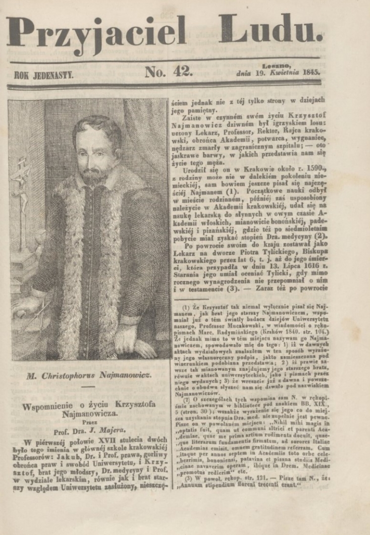 M. Christophorus Najmanowicz (Krzysztof Naymanowic/Najmanowicz). share Podziel się facebook google + twitter linkedin clipboard envelope print quote picture add × Cytowane źródła Cytowanie źródła on-line, czyli Internetowego Polskiego Słownika Biograficznego M. Christophorus Najmanowicz (Krzysztof Naymanowic/Najmanowicz)., [online] Warszawa: Narodowy Instytut Audiowizualny [dostęp 03.04.2026]. Dostępny w internecie: http://www.biogramy.pl/a/foto/m-christophorus-najmanowicz-krzysztof-naymanowicnajmanowicz Cytowanie wydania drukowanego, czyli Polskiego Słownika Biograficznego , M. Christophorus Najmanowicz (Krzysztof Naymanowic/Najmanowicz)., [w:] Polski słownik biograficzny, t. , IPSBID: ipsb-fo-100928 × Wyślij link do strony E-mail odbiorcy wiadomości: To pole jest wymaganeWpisz poprawny adres e-mail Twój adres e-mail: To pole jest wymaganeWpisz poprawny adres e-mail Podgląd wiadomości, która zostanie wysłana: Witaj, [Tutaj podany Twój e-mail] poleca Ci treść z iPSB (internetowym Polskim Słowniku Biograficznym) M. Christophorus Najmanowicz (Krzysztof Naymanowic/Najmanowicz). × Dodaj do kolekcji wybierz kolekcję, do której chcesz dodać ten artykuł: lub wpisz nazwę nowej kolekcji, do której chcesz dodać ten artykuł: : To pole jest wymagane Dodaj do kolekcji Wybierz kolekcję Swoje kolekcje znajdziesz w profilu. Wystarczy kliknąć ikonę zębatego koła w górnym prawym rogu. Możesz je zobaczyć tu: moje kolekcje. × Dodaj do kolekcji Element został dodany do Twojej kolekcji. Swoje kolekcje możesz zobaczyć tu: moje kolekcje. × Dodaj do kolekcji Aby dodawać materiały do kolekcji musisz się zalogować. OPIS POSTACI POWIąZANE Portret w: Przyjaciel Ludu, rok 11, nr 42, Leszno, 19 kwietnia 1845, s.329. Postaci powiązane Krzysztof Naymanowic (Najmanowicz) ok. 1590 - 1651-11-23 lekarz więcej >> Zobacz zdjęcie w najwyższej jakości Źródło
