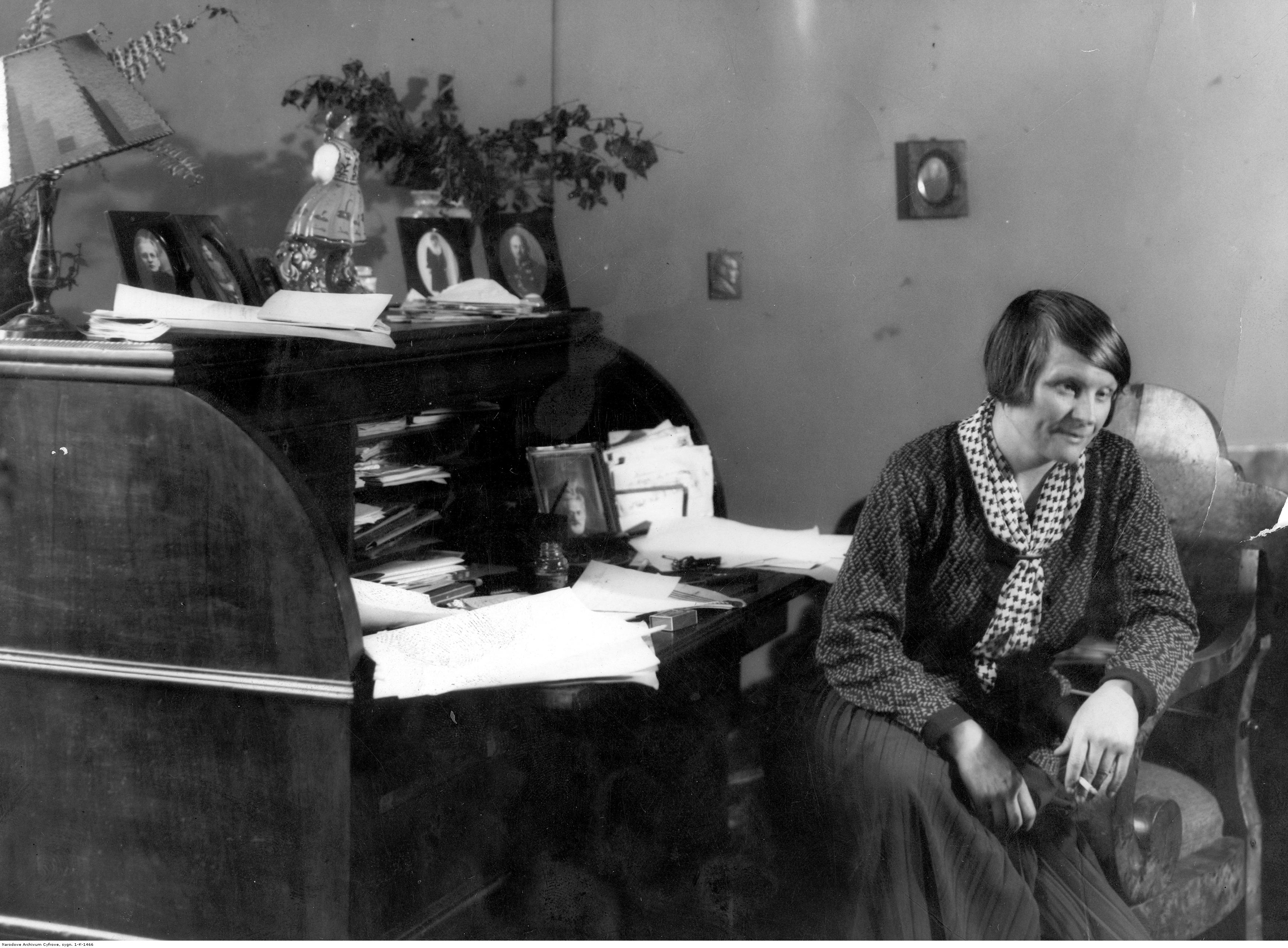 Maria Dąbrowska w swoim mieszkaniu w 1934 r., [online] Warszawa: Narodowy Instytut Audiowizualny [dostęp 01.04.2026]. Dostępny w internecie: http://www.biogramy.pl/a/foto/maria-dabrowska-w-swoim-mieszkaniu-w-1934-r