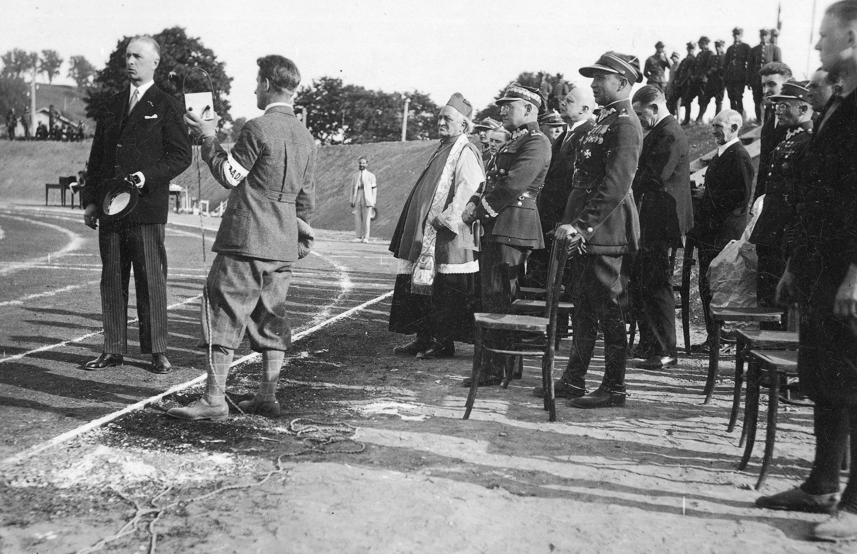 Międzynarodowe zawody lekkoatletyczne w Wilnie 15.06.1929 r. share Podziel się facebook google + twitter linkedin clipboard envelope print quote picture add × Cytowane źródła Cytowanie źródła on-line, czyli Internetowego Polskiego Słownika Biograficznego Międzynarodowe zawody lekkoatletyczne w Wilnie 15.06.1929 r., [online] Warszawa: Narodowy Instytut Audiowizualny [dostęp 28.02.2026]. Dostępny w internecie: http://www.biogramy.pl/a/foto/miedzynarodowe-zawody-lekkoatletyczne-w-wilnie-15061929-r Cytowanie wydania drukowanego, czyli Polskiego Słownika Biograficznego , Międzynarodowe zawody lekkoatletyczne w Wilnie 15.06.1929 r., [w:] Polski słownik biograficzny, t. , IPSBID: ipsb-fo-82811 × Wyślij link do strony E-mail odbiorcy wiadomości: To pole jest wymaganeWpisz poprawny adres e-mail Twój adres e-mail: To pole jest wymaganeWpisz poprawny adres e-mail Podgląd wiadomości, która zostanie wysłana: Witaj, [Tutaj podany Twój e-mail] poleca Ci treść z iPSB (internetowym Polskim Słowniku Biograficznym) Międzynarodowe zawody lekkoatletyczne w Wilnie 15.06.1929 r. × Dodaj do kolekcji wybierz kolekcję, do której chcesz dodać ten artykuł: lub wpisz nazwę nowej kolekcji, do której chcesz dodać ten artykuł: : To pole jest wymagane Dodaj do kolekcji Wybierz kolekcję Swoje kolekcje znajdziesz w profilu. Wystarczy kliknąć ikonę zębatego koła w górnym prawym rogu. Możesz je zobaczyć tu: moje kolekcje. × Dodaj do kolekcji Element został dodany do Twojej kolekcji. Swoje kolekcje możesz zobaczyć tu: moje kolekcje. × Dodaj do kolekcji Aby dodawać materiały do kolekcji musisz się zalogować. OPIS POSTACI POWIąZANE Uroczystość otwarcia zawodów. Wśród gości znajdują się m.in.: Władysław Raczkiewicz (1. z lewej), bp Władysław Bandurski, gen. Aleksander Litwinowicz (na prawo od bpa Bandurskiego), mjr Leopold Okulicki (na prawo od gen. Litwinowicza). Postaci powiązane Władysław Bandurski 1865-05-25 - 1932-03-06 biskup polowy WP Władysław Raczkiewicz 1885-01-28 - 1947-06-06 prezydent RP na uchodźstwie Aleksander Litwinowicz 1879-02-27 - 1948-01-14 wiceminister spraw wojskowych Leopold Okulicki 1898-11-13 - 1946-12-24 generał brygady WP więcej >> Zobacz zdjęcie w najwyższej jakości Źródło