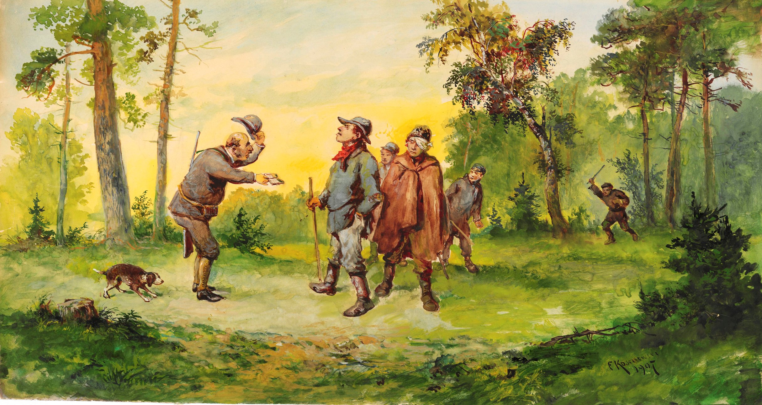 "Na polowaniu w cudzym lesie" Franciszka Kostrzewskiego., [online] Warszawa: Narodowy Instytut Audiowizualny [dostęp 13.04.2026]. Dostępny w internecie: http://www.biogramy.pl/a/foto/na-polowaniu-w-cudzym-lesie-franciszka-kostrzewskiego