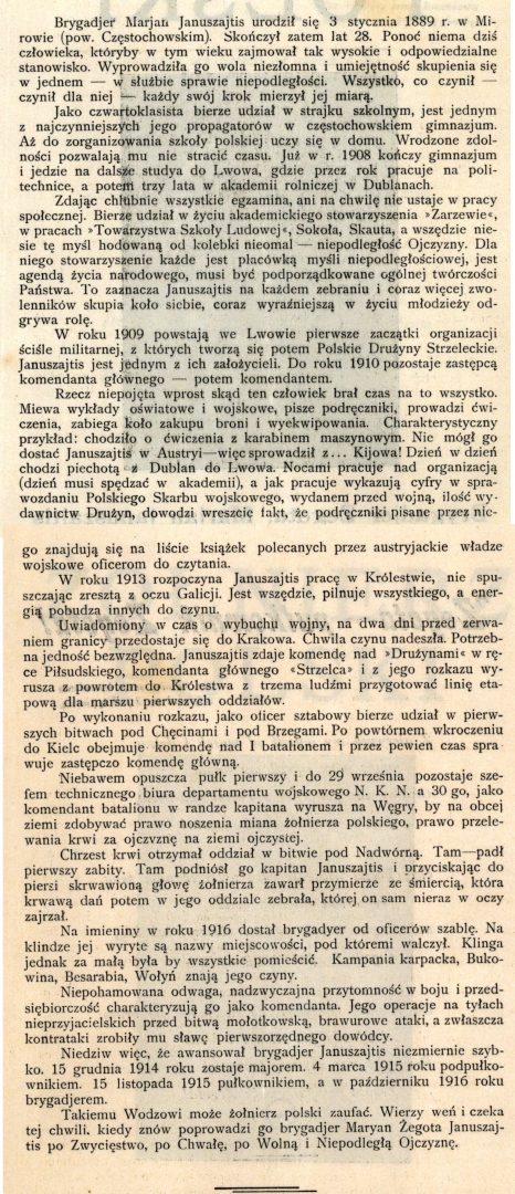 , Notka biograficzna Mariana Januszajtisa opublikowana w 1917 r., [w:] Polski słownik biograficzny, t. ,