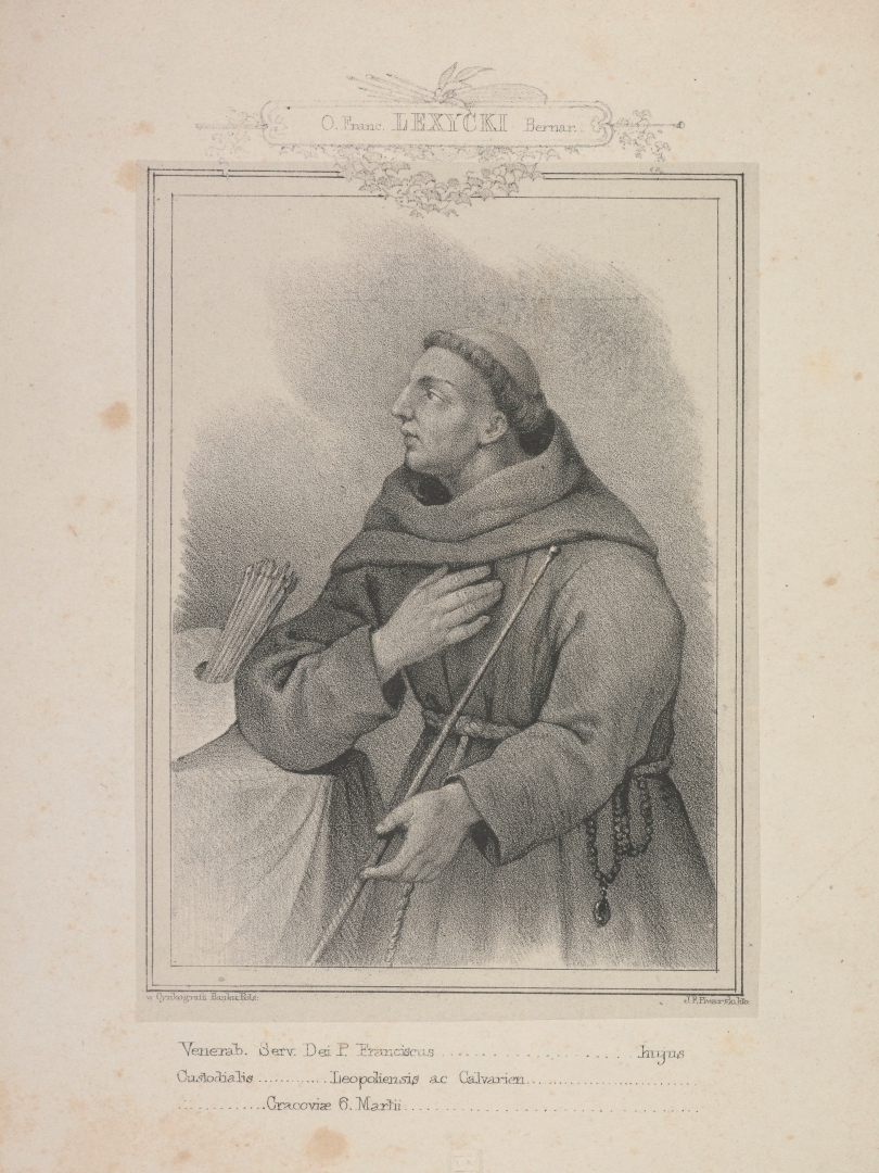 , "O. Franc. LEXYCKI Bernar." - portret Franciszka Lekszyckiego, litografia Jana Feliksa Piwarskiego., [w:] Polski słownik biograficzny, t. ,