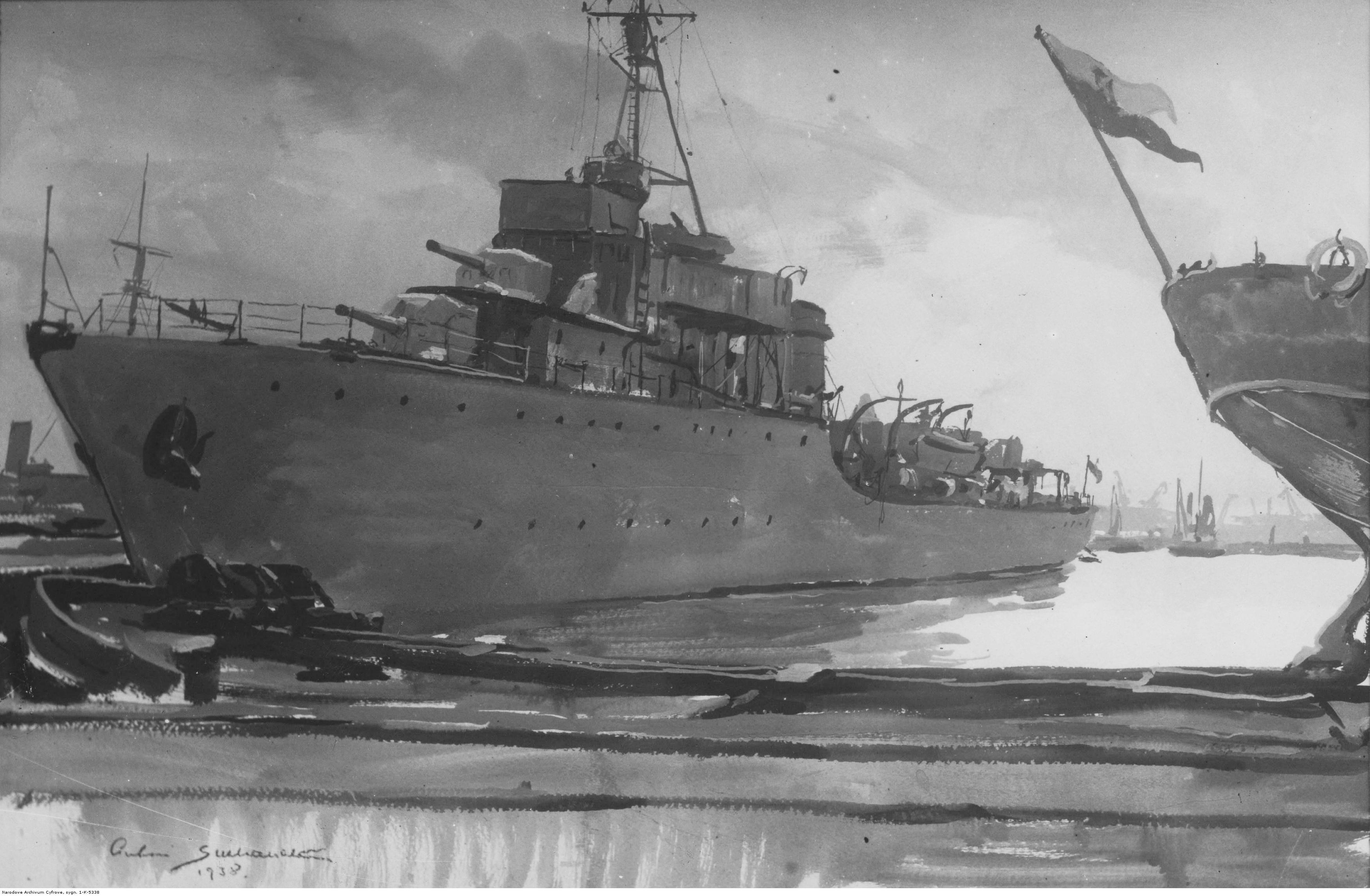 Obraz artysty malarza Antoniego Suchanka "ORP Wicher" namalowany w 1938 roku., [online] Warszawa: Narodowy Instytut Audiowizualny [dostęp 01.03.2026]. Dostępny w internecie: http://www.biogramy.pl/a/foto/obraz-artysty-malarza-antoniego-suchanka-orp-wicher-namalowany-w-1938-roku