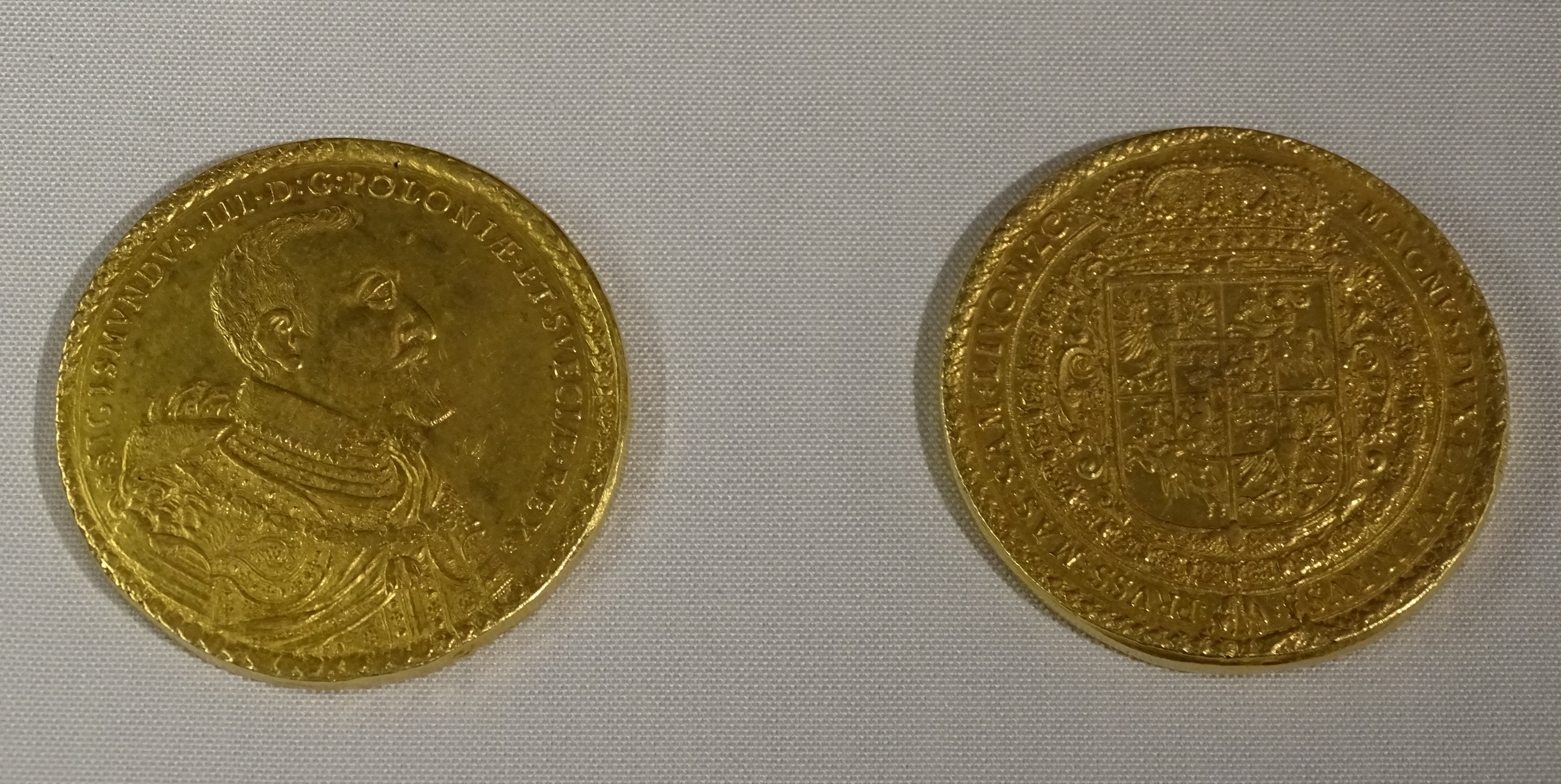 Na awersie ukazano popiersie władcy w zbroi z orderem Złotego Runa na szyi z napisem (po łacinie) "Zygmunt III z Bożej Łaski król Polski i Szwecji". Na rewersie znajduje się tarcza z herbami Polski, Litwy, Szwecji i Gotlandii oraz z wyobrażniem Snopka - herbu rodowego Wazów. W otoku umieszczono dokończenie tytułu królewskiego: "Wielki Książę Litewski, Rusi, Prus, Mazowiecki, Żmudzki, Inflancki, itd." Moneta zaprojektowana przez Samuela Ammona została wybita w królewskiej mennicy w Bydgoszczy w 1621 roku dla uczczenia zwycięstwa na Turkami pod Chocimiem. Dzieło to uchodzi za jedną z najpiękniejszych i najrzadszych monet na świecie. Widoczne egzemplarze pochodzą ze zbiorów Węgierskiego Muzeum Narodowego w Budapeszczie a zostały pokazane w Warszawie na wystawie "Bratanków dzieje wspólne".