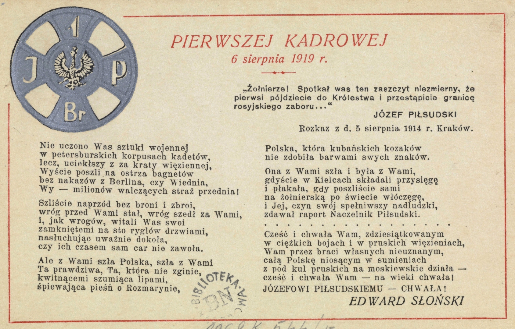 , "Pierwszej Kadrowej, 6 sierpnia 1919 r." Edwarda Słońskiego., [w:] Polski słownik biograficzny, t. ,