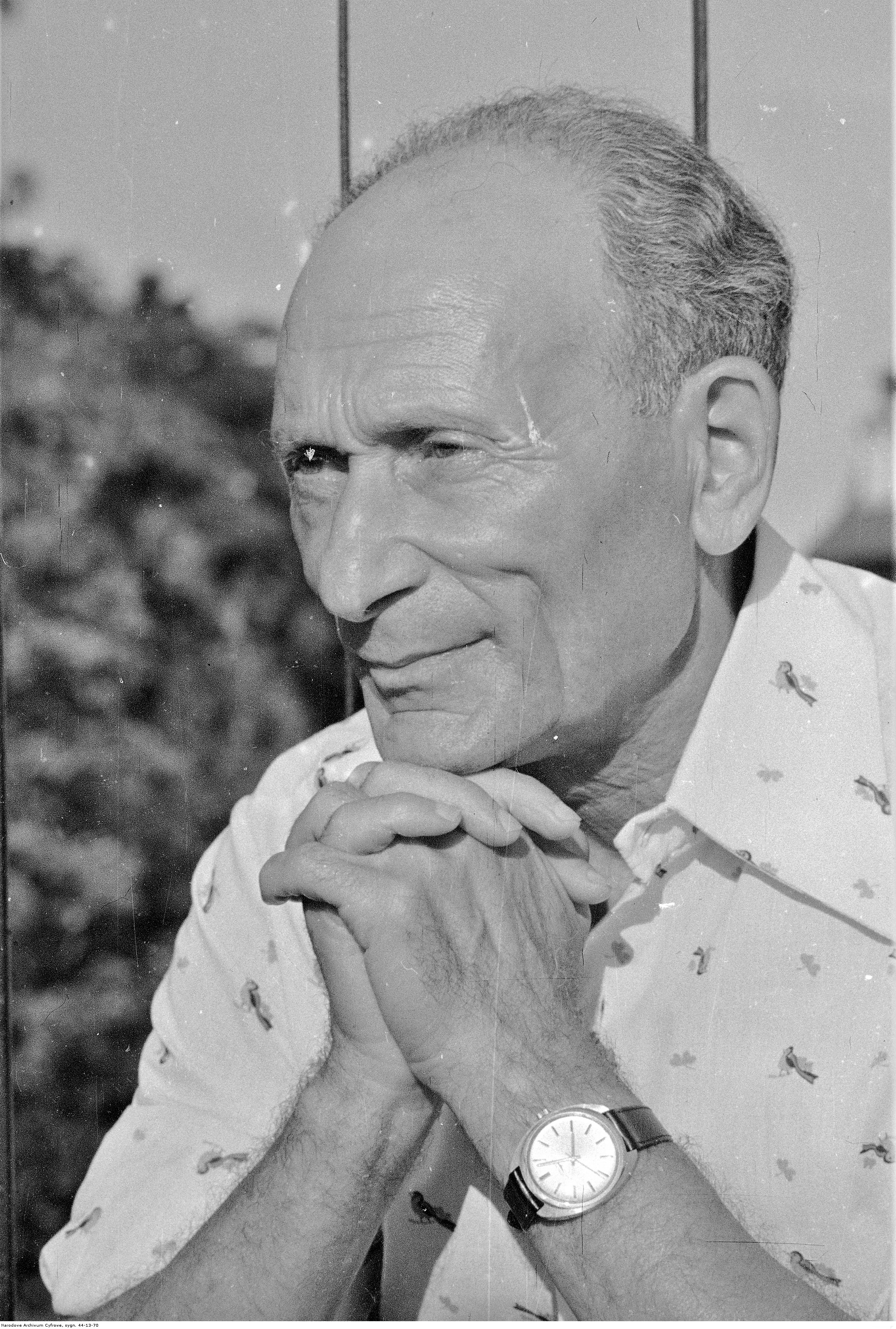 Pisarz Julian Stryjkowski w sierpniu 1975 r., [online] Warszawa: Narodowy Instytut Audiowizualny [dostęp 19.04.2026]. Dostępny w internecie: http://www.biogramy.pl/a/foto/pisarz-julian-stryjkowski-sierpien-1975-r