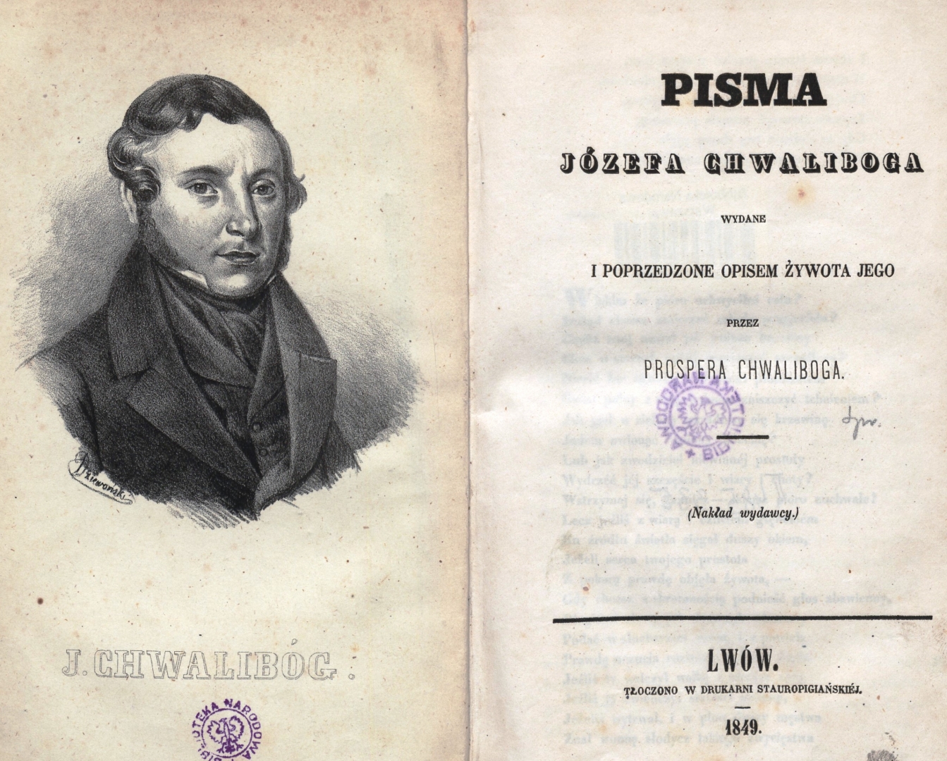 Portret Józefa Chwaliboga i strona tytułowa książki "Pisma Józefa Chwaliboga"., [online] Warszawa: Narodowy Instytut Audiowizualny [dostęp 06.03.2026]. Dostępny w internecie: http://www.biogramy.pl/a/foto/pisma-jozefa-chwaliboga