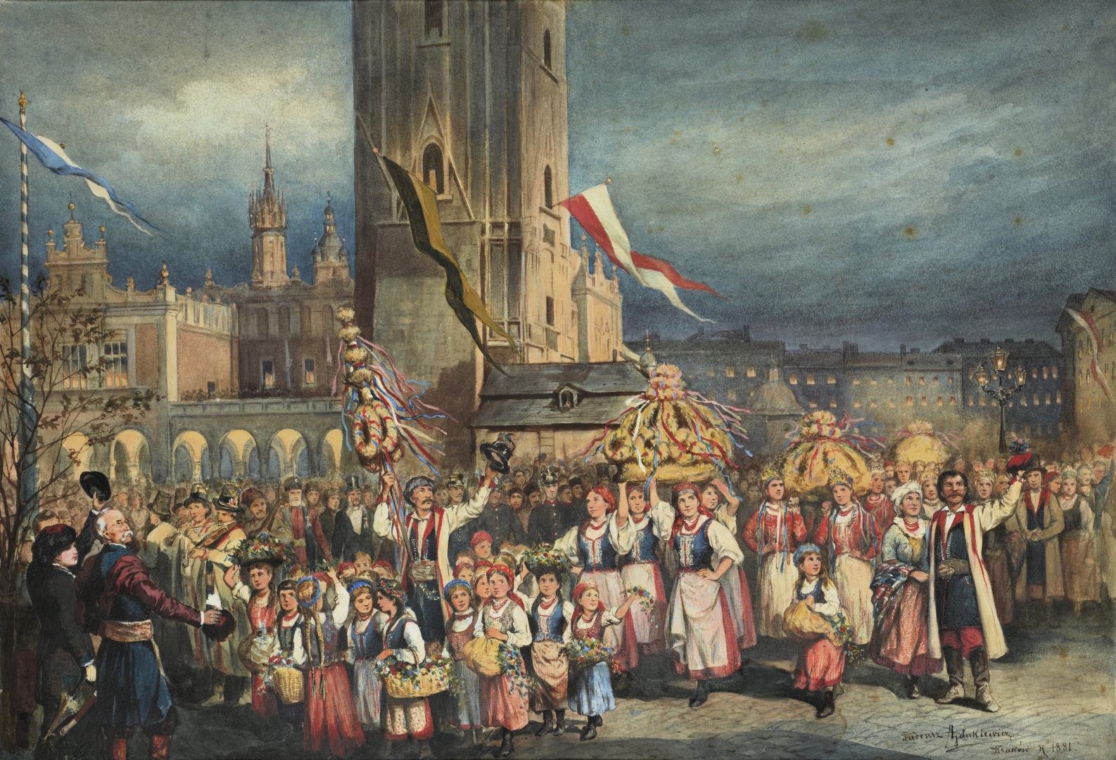 , "Pochód dożynkowy ludu krakowskiego na Rynku Głównym w Krakowie" Tadeusza Ajdukiewicza., [w:] Polski słownik biograficzny, t. ,