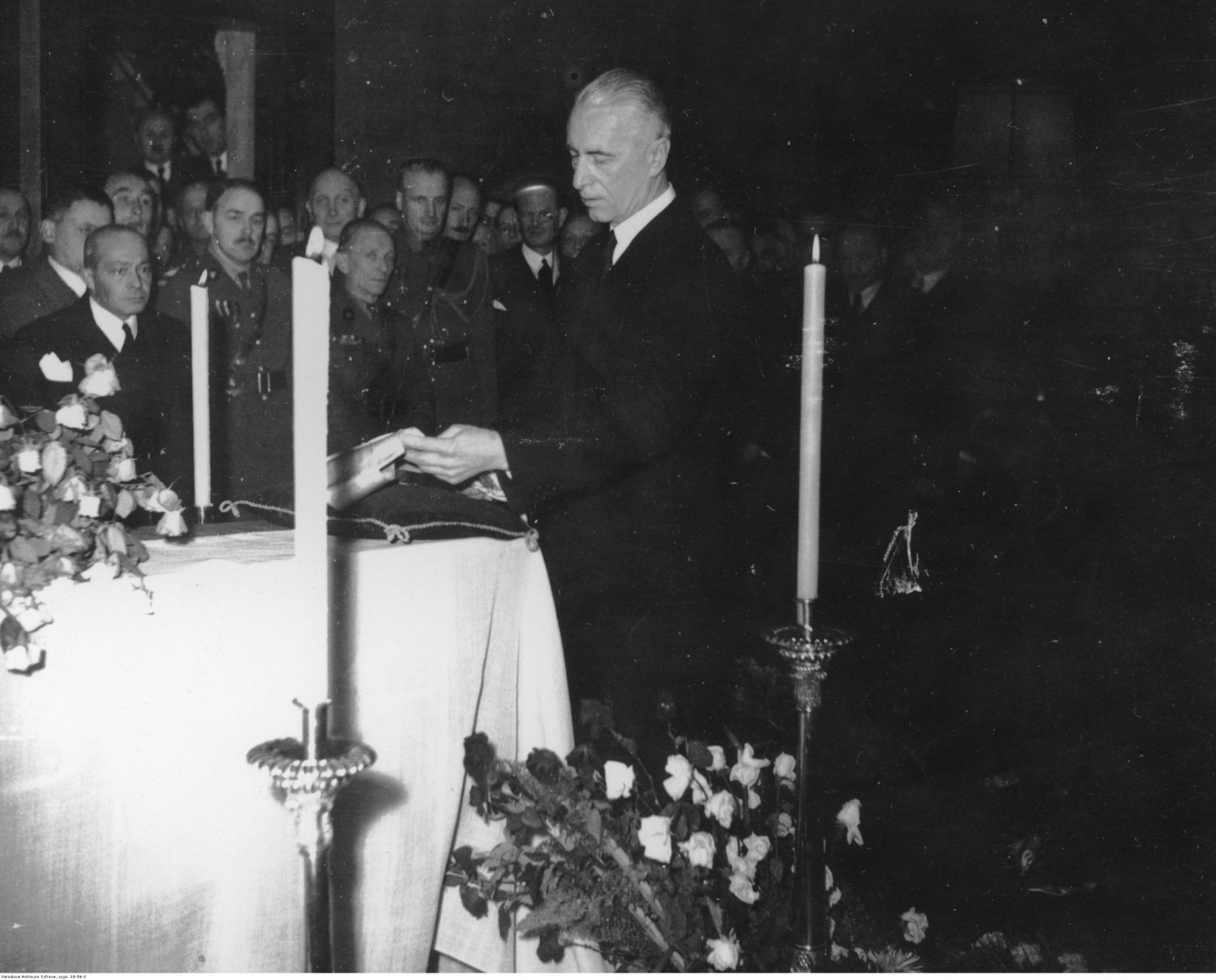 Pośmiertna dekoracja orderem Orła Białego. Na pierwszym planie Władysław Raczkiewicz - prezydent RP. Na dalszym planie w pierwszym rzędzie drugi od lewej gen. Marian Żegota-Januszajtis. Widoczni także m.in.: gen. Izydor Modelski, August Zaleski, Adam Romer.