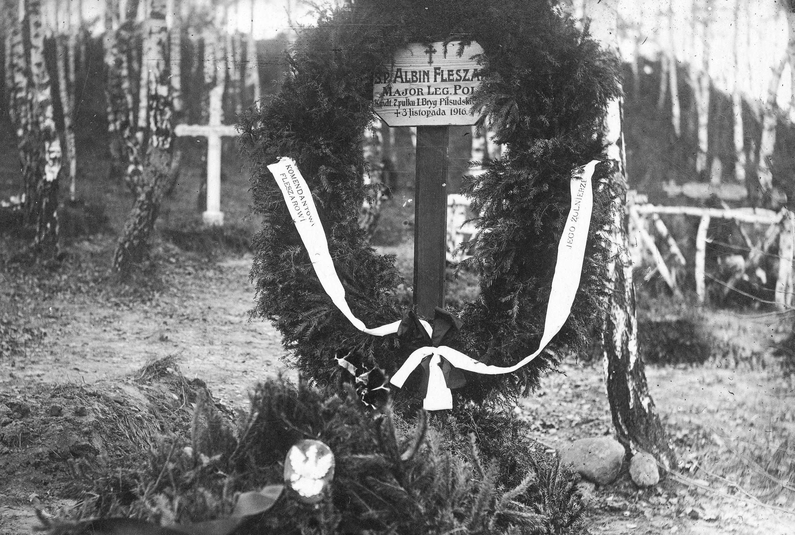 Pogrzeb majora Albina Fleszara w Słonimiu 6.11.1916 r., [online] Warszawa: Narodowy Instytut Audiowizualny [dostęp 27.02.2026]. Dostępny w internecie: http://www.biogramy.pl/a/foto/pogrzeb-majora-albina-fleszara-w-slonimiu-6111916-r-5