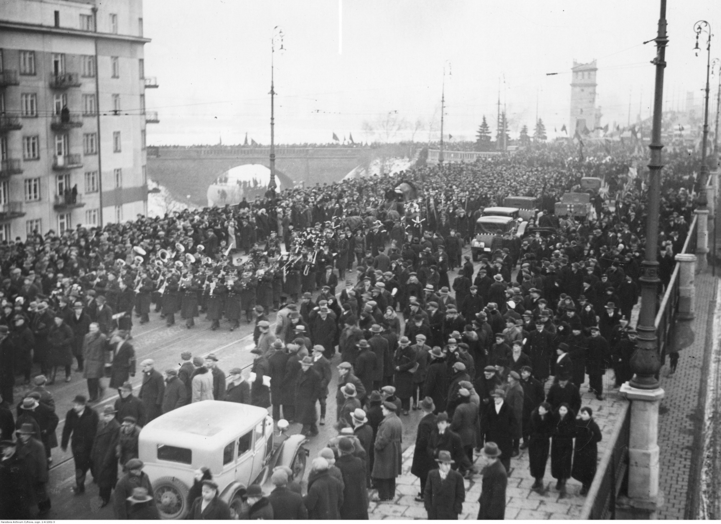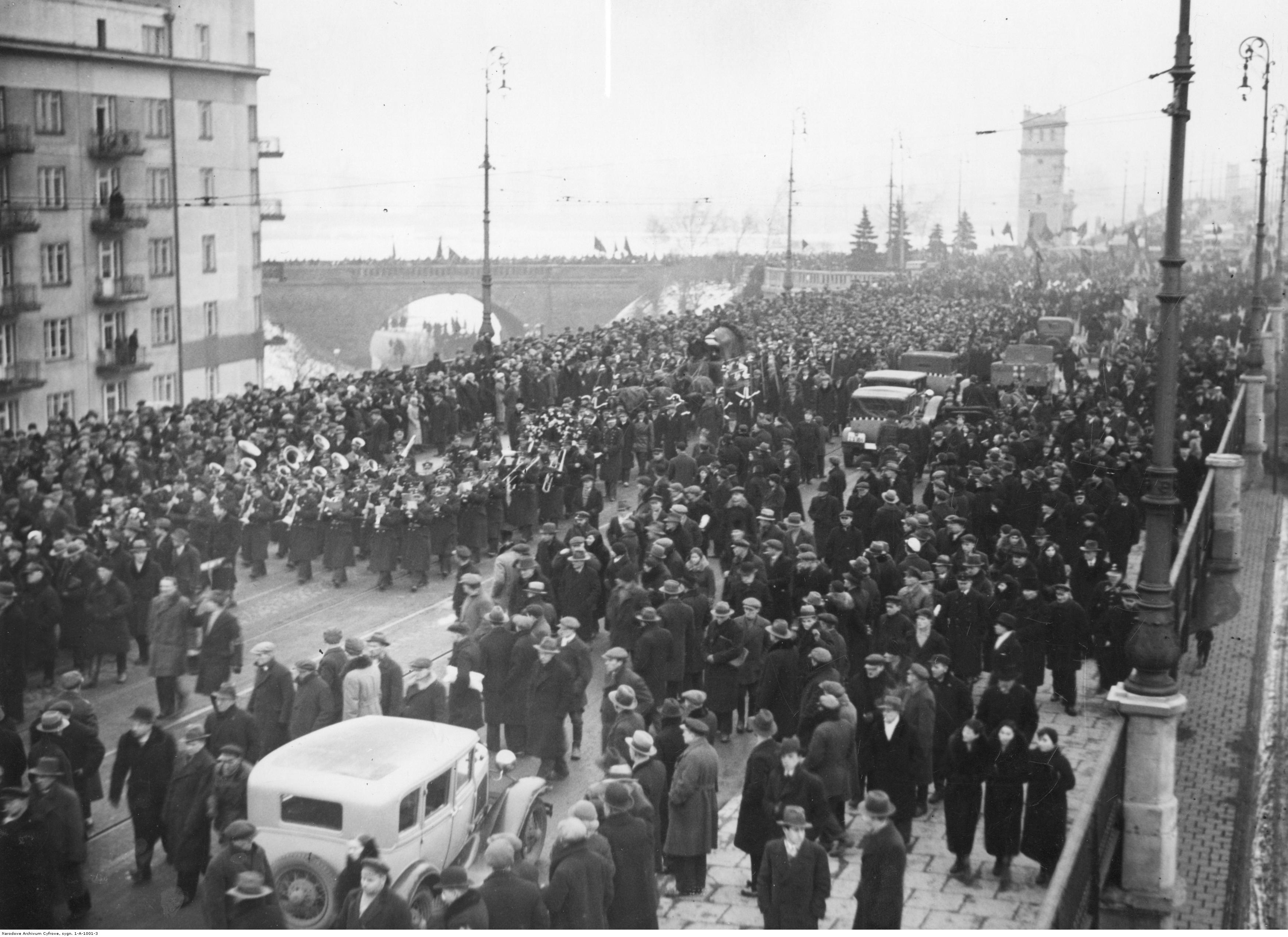 Kondukt żałobny na wiadukcie mostu Poniatowskiego.