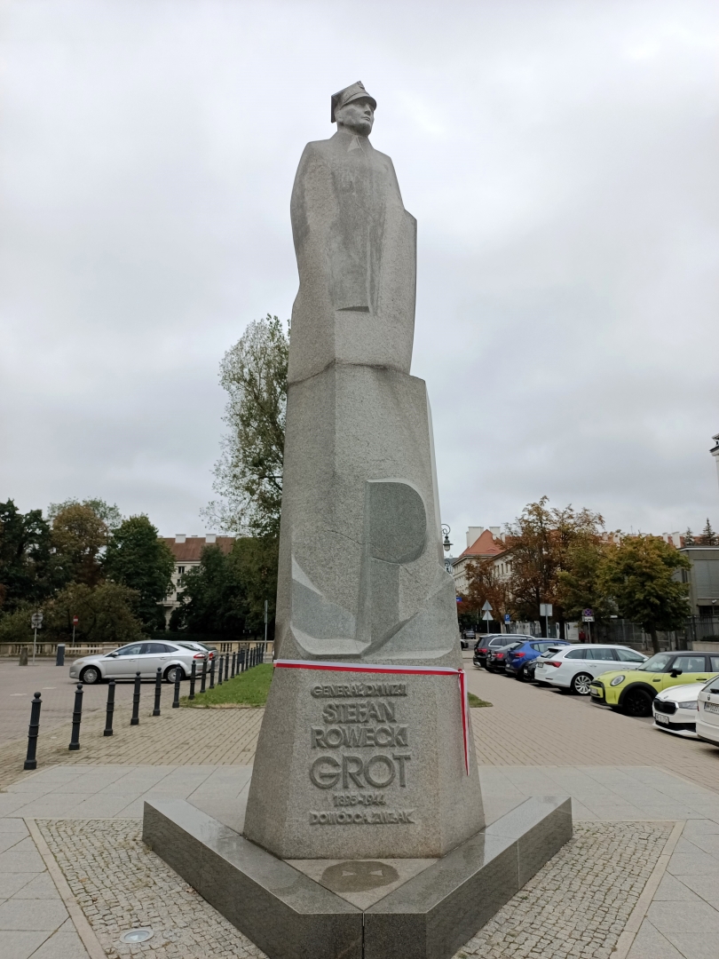 Odsłonięty w 2005 roku monument stoi u zbiegu ulic Chopina i Alej Ujazdowskich. Pomnik powstał z inicjatywy Świątowego Związku Żołnierzy AK. Trzydziestotonowa rzeźba wysoka na ponad 6 metrów wykonana została z granitu przez Zbigniewa Mikielewicza. Projekt architektoniczny wykonał Przemysłąw Dudziuk.