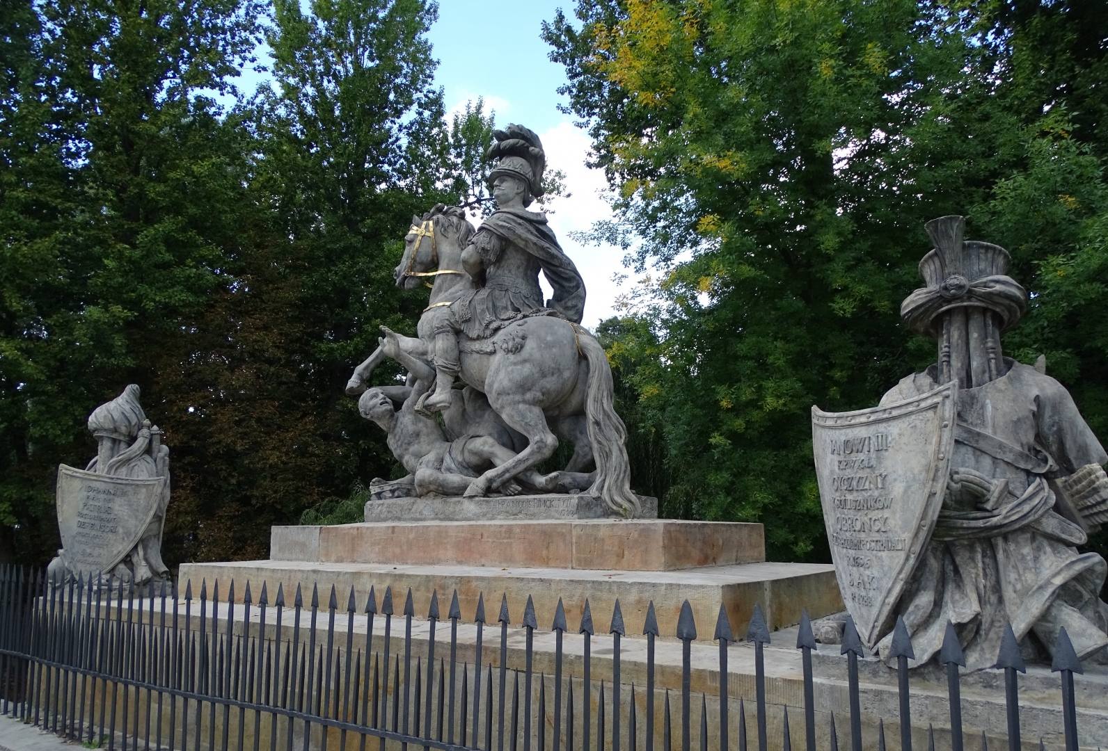 Monument stoi na moście na ulicy Arykola, który nazwano w związku z tym Mostem Sobieskiego. Pomnik ufundował król Stanisław August Poniatowski. Odsłonięto go w 1788 roku. Pomnik zaprojektował Andrzej Le Brun, a rzeźby wykonał Franciszek Pinck. Monument z szydłowieckiego piaskowca ma ok. 4 metrów wysokości. W środkowej części ukazany został zwycięski król na koniu, który tratuje pokonanych Turków. Po bokach znajdują się tarcze z inskrypcjami, wsparte na zdobycznej broni tureckiej.