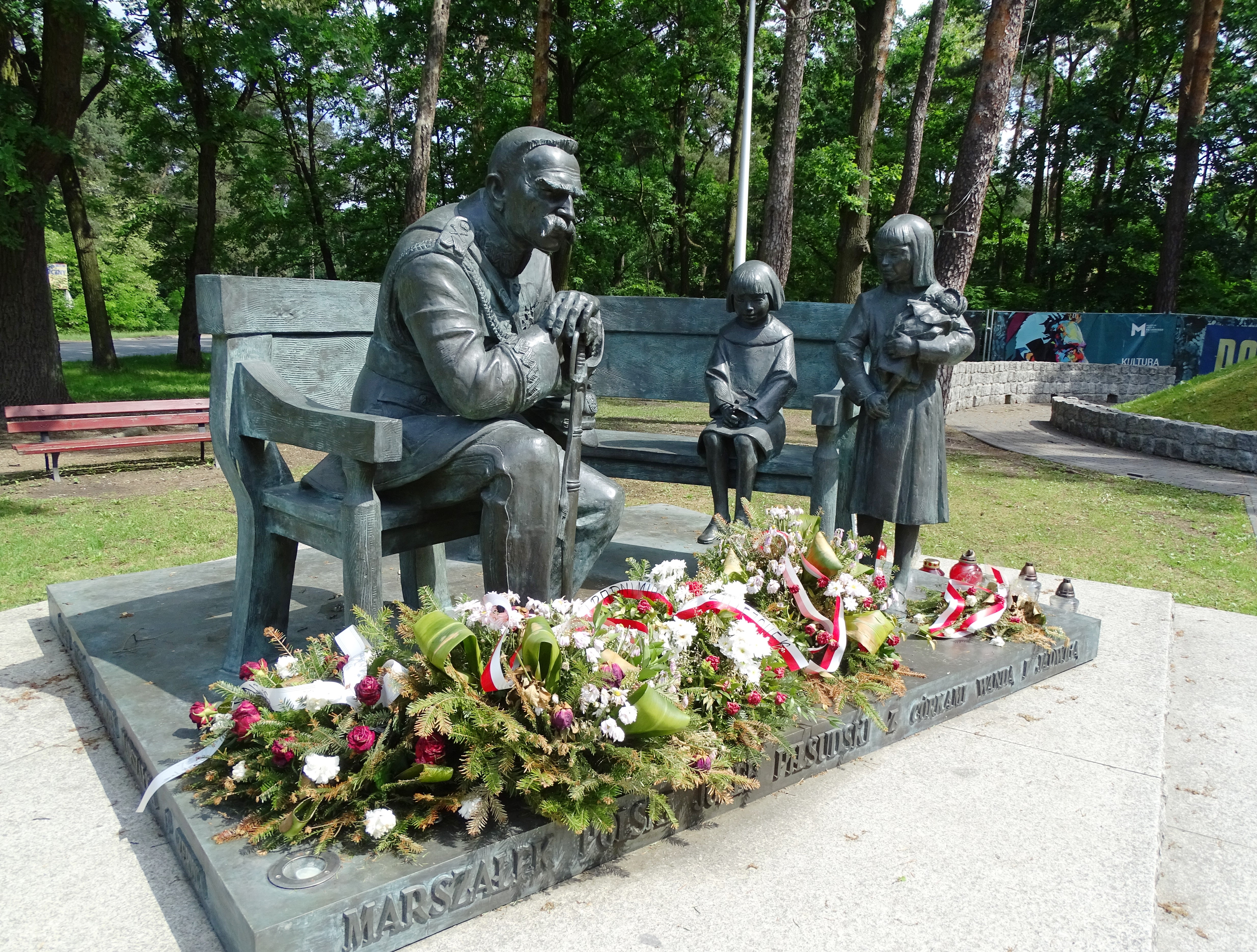 Na cokole pomnika zatytułowanego „Lekcja historii” widnieje napis: "Marszałek Polski Józef Piłsudski z córkami Wandą i Jadwigą". Marszałek w galowym mundurze spoczywa w fotelu wsparty na szabli. Jego młodsza córka - Jadwiga siedzi na ławce, a starsza Wanda stoi trzymając lalkę. Ławka w całości odlana jest z brązu. Pomnik autorstwa Karola Badyny odsłonięto 10 czerwca 2010 roku przy Alei Piłsudskiego, niedaleko willi "Milusin". W domu tym Marszałek mieszkał w latach 1923-26 a obecnie powstaje tam poświęconemu mu nowoczesne muzeum.