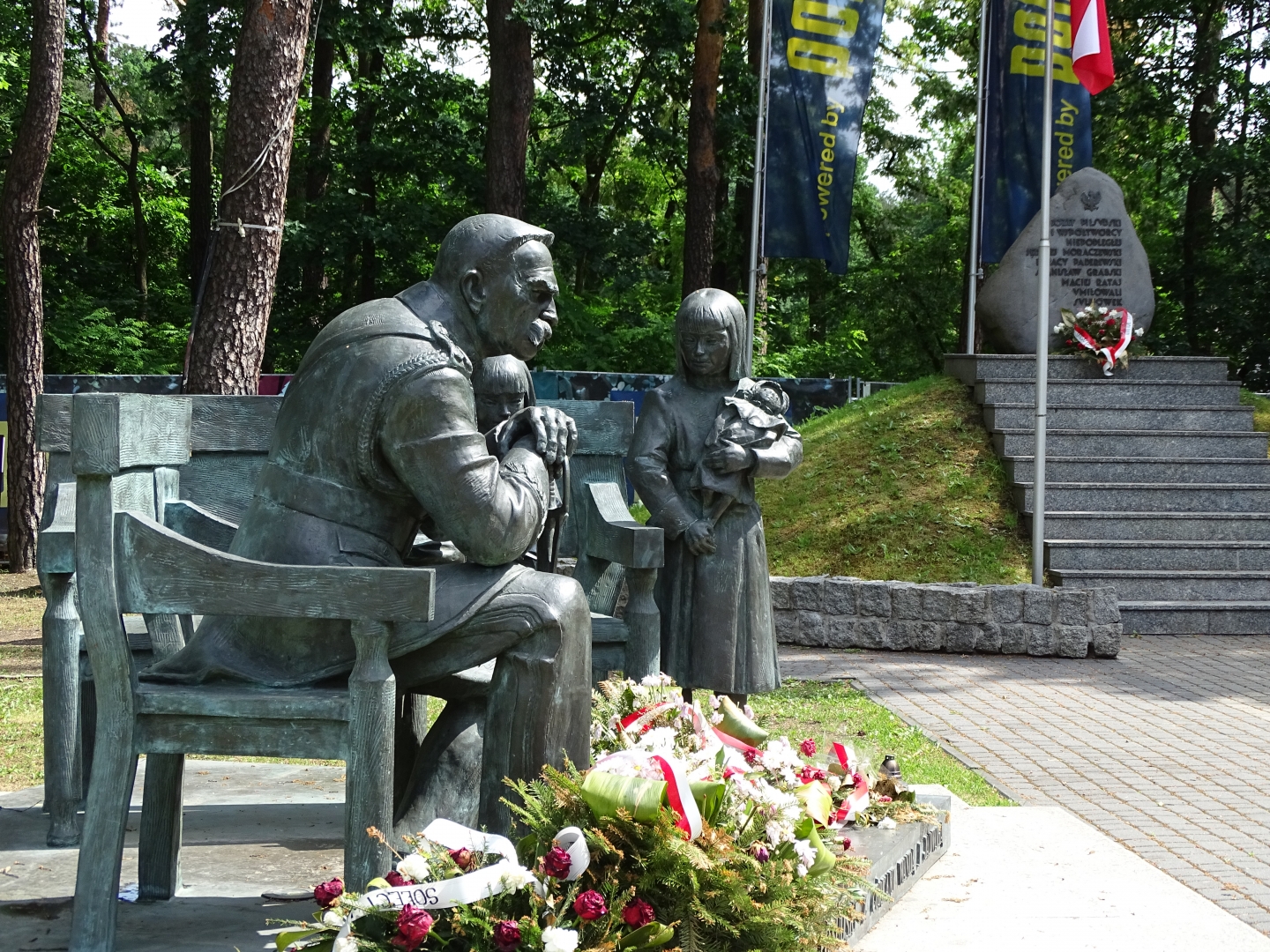 Pomnik zatytułowany „Lekcja historii” ukazuje Marszałka w galowym mundurze, ktory spoczywa w fotelu wsparty na szabli. Jego młodsza córka - Jadwiga siedzi na ławce, a starsza Wanda stoi trzymając lalkę. Pomnik autorstwa Karola Badyny odsłonięto 10 czerwca 2010 roku przy Alei Piłsudskiego, obok dworku gdzie Marszałek mieszkał w latach 1923-26. W głębi na szczycie ziemnego kopczyka widoczny jest głaz z napisem "Józef Piłsudski i współtwórcy Niepodległej Jędrzej Moraczewski Igancy Paderewski Stanisław Grabski Maciej Rataj umiłowali Sulejówek".