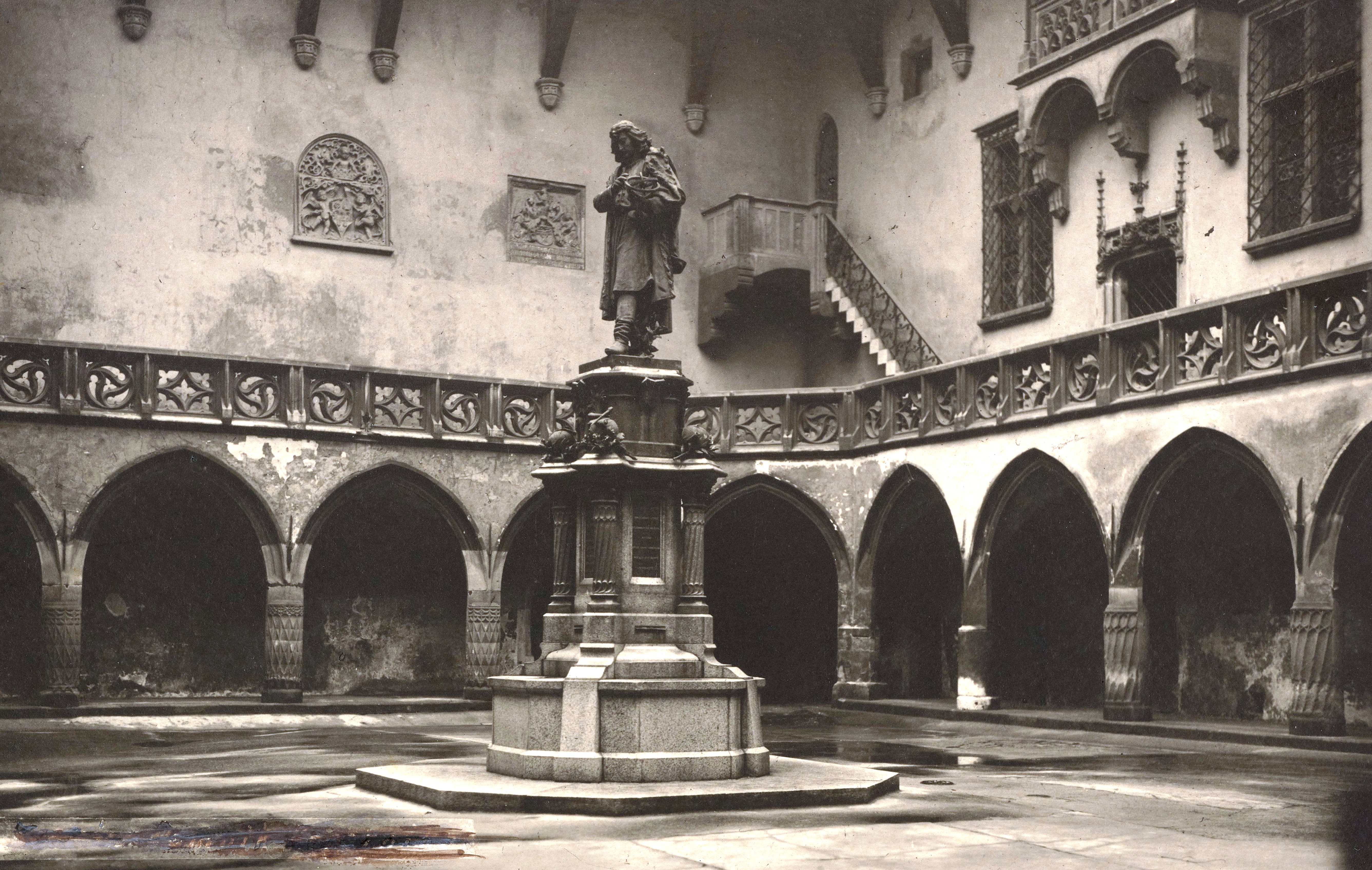 Pomnik zaprojektowany przez Cypriana Godebskiego został uroczyście odsłonięty na dziedzińcu Collegium Maius Uniwersytetu Jagiellońskiego 8.06.1900 r. W 1953 roku pomnik przeniesiono na Planty przed Collegium Witkowskiego.