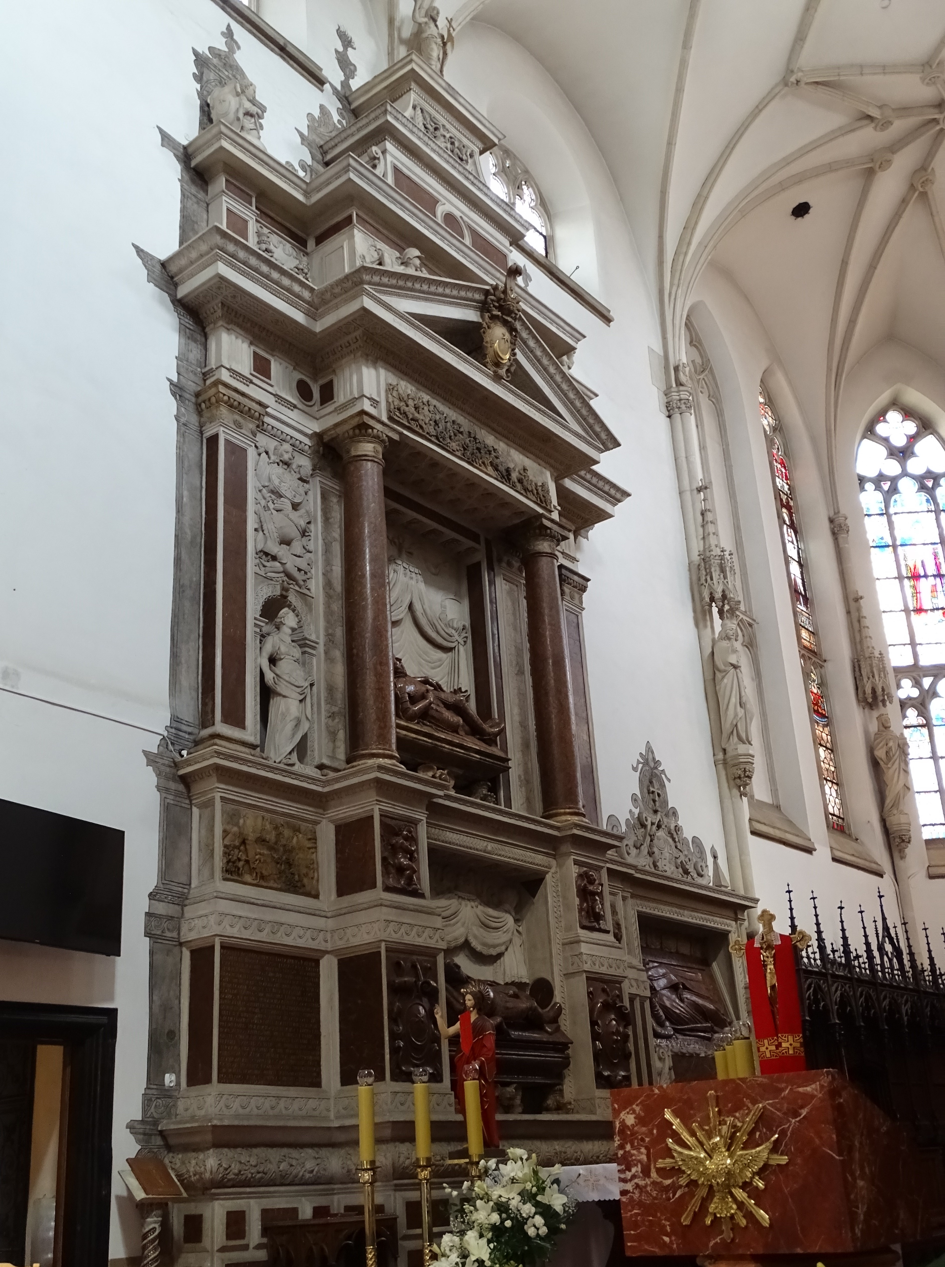 Pomnik nagrobny hetmana Jana Tarnowskiego i jego syna Jana Krzysztofa w katedrze w Tarnowie. share Podziel się facebook google + twitter linkedin clipboard envelope print quote picture add × Cytowane źródła Cytowanie źródła on-line, czyli Internetowego Polskiego Słownika Biograficznego Pomnik nagrobny hetmana Jana Tarnowskiego i jego syna Jana Krzysztofa w katedrze w Tarnowie., [online] Warszawa: Narodowy Instytut Audiowizualny [dostęp 15.04.2026]. Dostępny w internecie: http://www.biogramy.pl/a/foto/pomnik-nagrobny-hetmana-jana-tarnowskiego-i-jego-syna-jana-krzysztofa-w-katedrze-w-tarnowie Cytowanie wydania drukowanego, czyli Polskiego Słownika Biograficznego , Pomnik nagrobny hetmana Jana Tarnowskiego i jego syna Jana Krzysztofa w katedrze w Tarnowie., [w:] Polski słownik biograficzny, t. , IPSBID: ipsb-fo-101866 × Wyślij link do strony E-mail odbiorcy wiadomości: To pole jest wymaganeWpisz poprawny adres e-mail Twój adres e-mail: To pole jest wymaganeWpisz poprawny adres e-mail Podgląd wiadomości, która zostanie wysłana: Witaj, [Tutaj podany Twój e-mail] poleca Ci treść z iPSB (internetowym Polskim Słowniku Biograficznym) Pomnik nagrobny hetmana Jana Tarnowskiego i jego syna Jana Krzysztofa w katedrze w Tarnowie. × Dodaj do kolekcji wybierz kolekcję, do której chcesz dodać ten artykuł: lub wpisz nazwę nowej kolekcji, do której chcesz dodać ten artykuł: : To pole jest wymagane Dodaj do kolekcji Wybierz kolekcję Swoje kolekcje znajdziesz w profilu. Wystarczy kliknąć ikonę zębatego koła w górnym prawym rogu. Możesz je zobaczyć tu: moje kolekcje. × Dodaj do kolekcji Element został dodany do Twojej kolekcji. Swoje kolekcje możesz zobaczyć tu: moje kolekcje. × Dodaj do kolekcji Aby dodawać materiały do kolekcji musisz się zalogować. OPIS POSTACI POWIąZANE Jest to największy nagrobek renesansowy w Polsce. Jego autorem był Giovanni Maria Padovano. Wykonany został w latach 1561-1574 roku. Fot. Tadeusz Święchowicz, 11.05.2019 r. Postaci powiązane Jan Amor Tarnowski h. Leliwa 1488 - 1561-05-16 hetman wielki koronny więcej >> Zobacz zdjęcie w najwyższej jakości