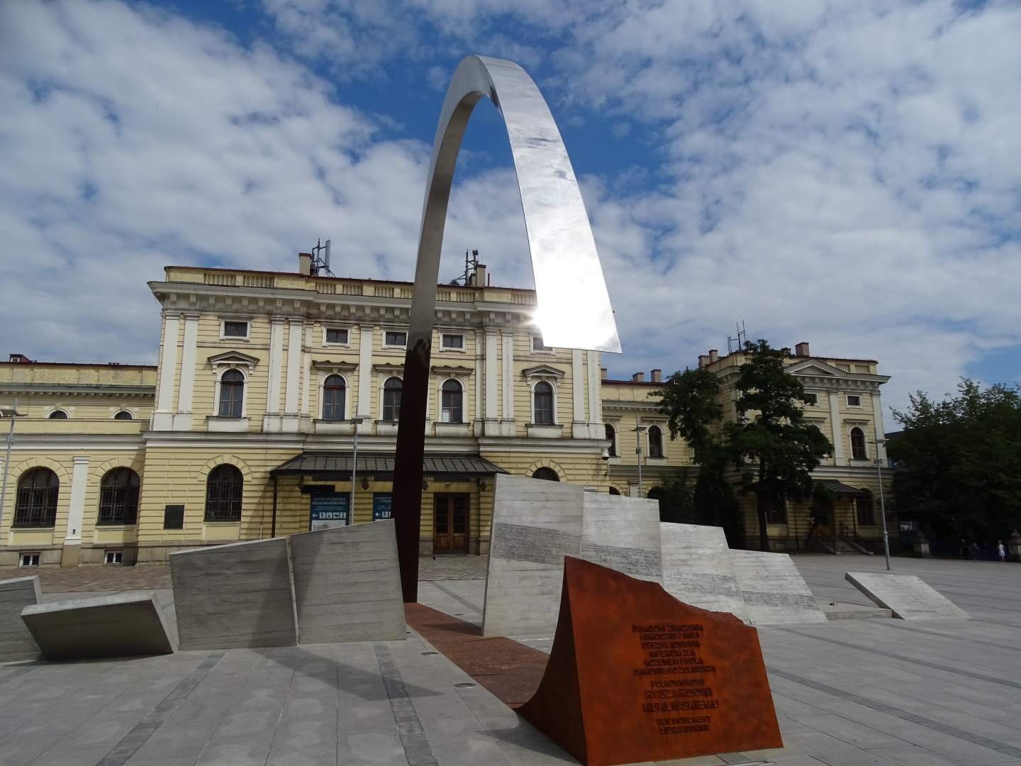 Inicjatorem budowy pomnika było Stowarzyszenie im. płk. Ryszarda Kuklińskiego. Autorami projektu wybranego w konkursie w 2011 roku są Czesław Dźwigaj i Krzysztof Lenartowicz. Pomnik ma formę upadających betonowych płyt symbolizujących mur berliński, nad którymi wznosi się stalowy łuk. Na płytach zapisano najważniejsze daty z życia Ryszarda Kuklińskiego i najnowszej historii Polski. Pomnik odsłonił uroczyście w czerwcu 2018 roku prezydent Krakowa Jacek Majchrowski.