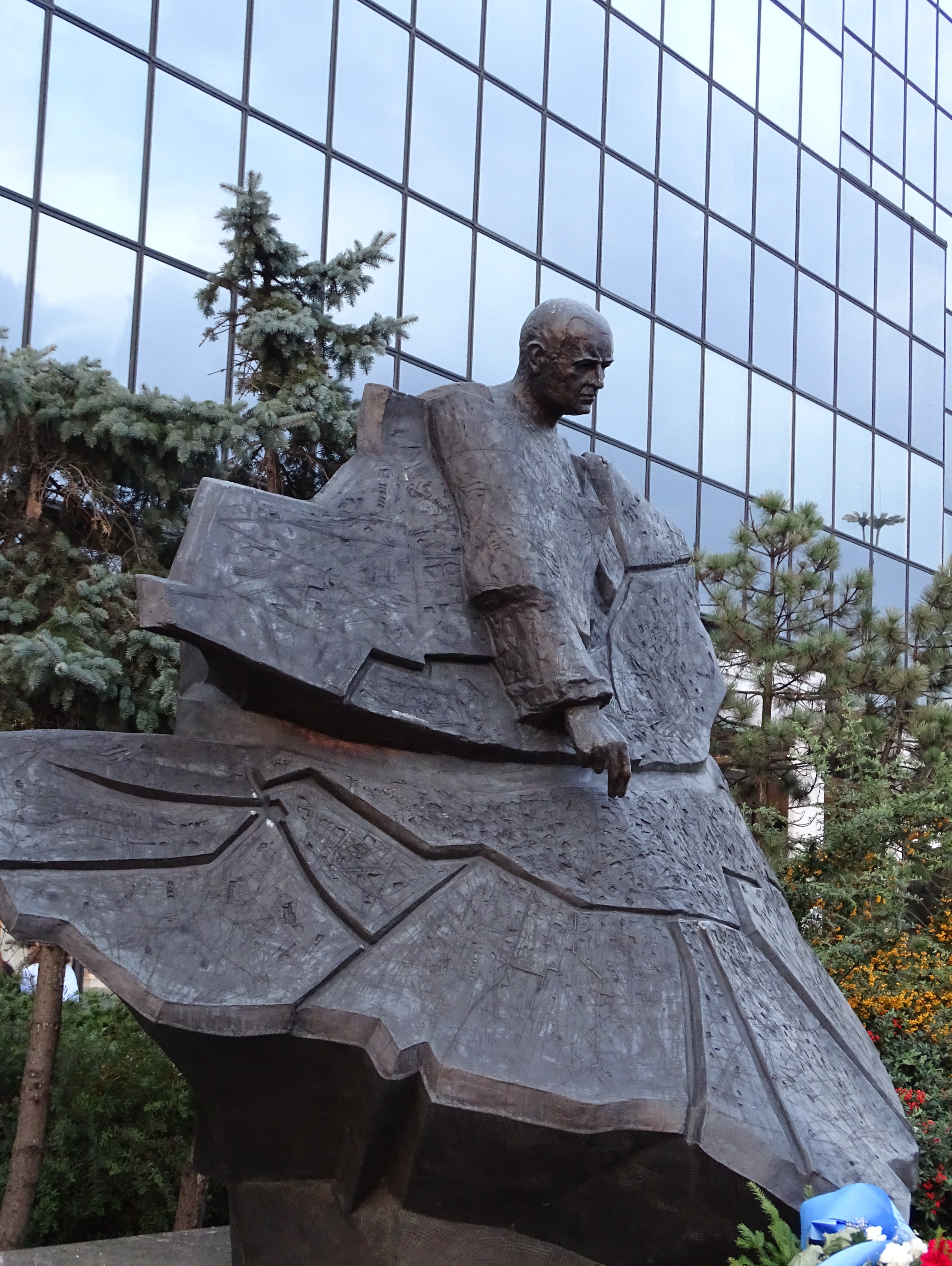 Brązowy monument ustawiono przed Błękitnym Wieżowcem 10 listopada 1993, w setną rocznicę urodzin prezydenta. Przedstawia postać Starzyńskiego pochylającego się nad mapą Warszawy. Pomnik jest dziełem rzeźbiarza Andrzeja Renesa.