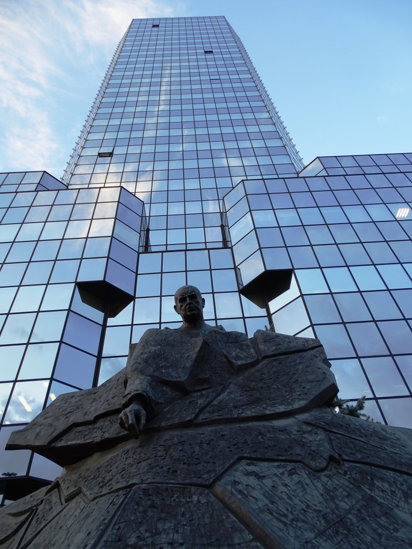 Monument stojący przed Błękitnym Wieżowcem odsłonięto 10 listopada 1993 roku, w setną rocznicę urodzin prezydenta. Pomnik odlany z brązu i ustawiony na granitowym cokole jest dziełem artysty-rzeźbiarza Andrzeja Renesa.