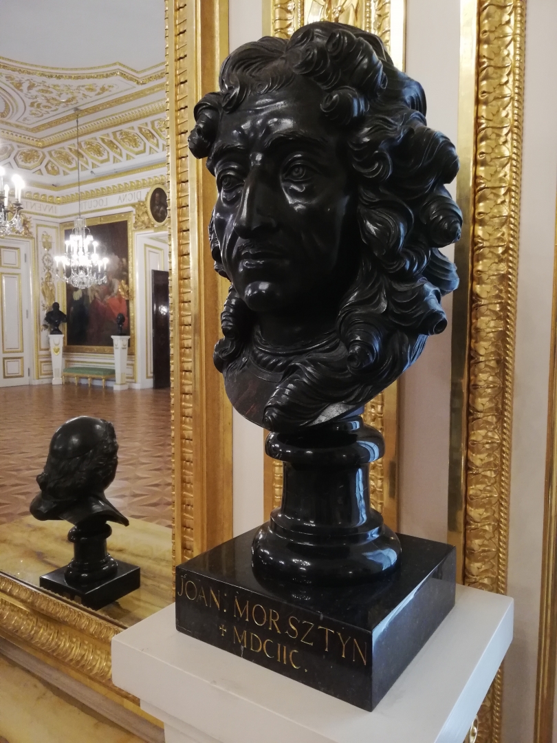 Odlew z brązu na cokole z czarnego marmuru. Autor: Andrzej Le Brun (1737-1811), na podstawie ryciny Jeana Edelincka sprzed roku 1680 (którą także prezentujemy w sekcji ikonografii związnej z Morsztynem).