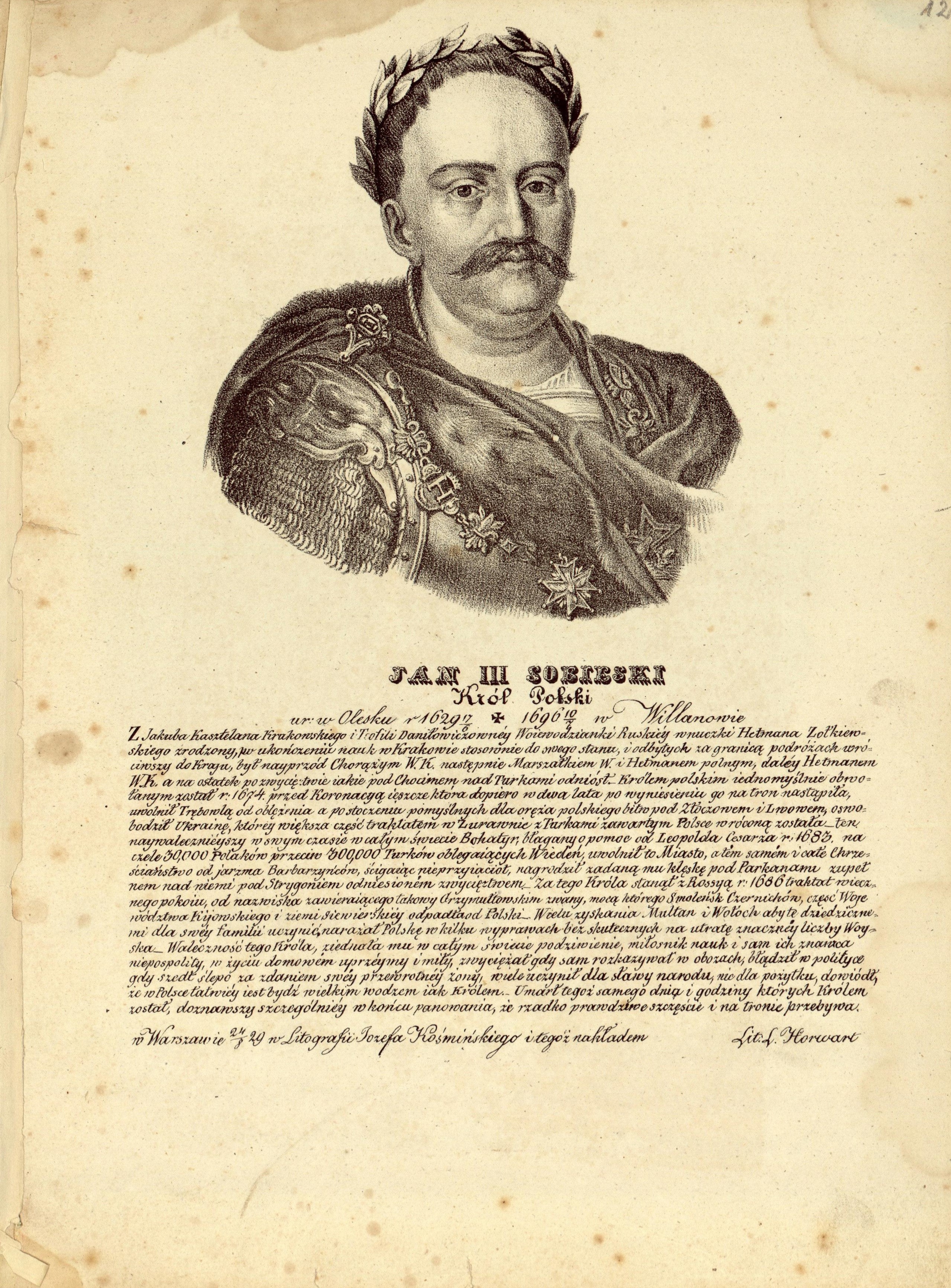 Litografia autorstwa Ludwika Horwarta w: Józef KOŚMIŃSKI; Portrety królów polskich i ludzi sławnych z opisem krótkim ich życia przez J.P.L.W. Kośmińskiego wydane; Warszawa 1829-1830.