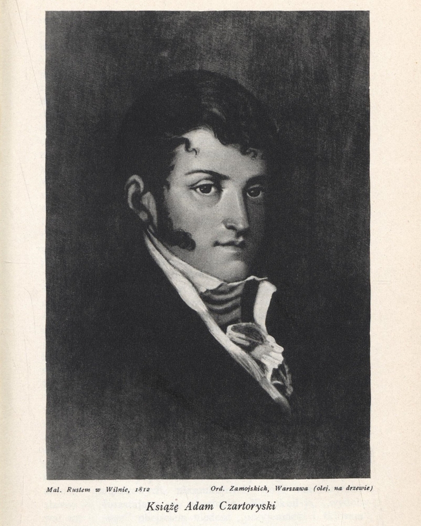 Podpisy: "Książę Adam Czartoryski", "Mal. Rustem w Wilnie, 1812" oraz "Ord. Zamojskich, Warszawa (olej na drzewie)".