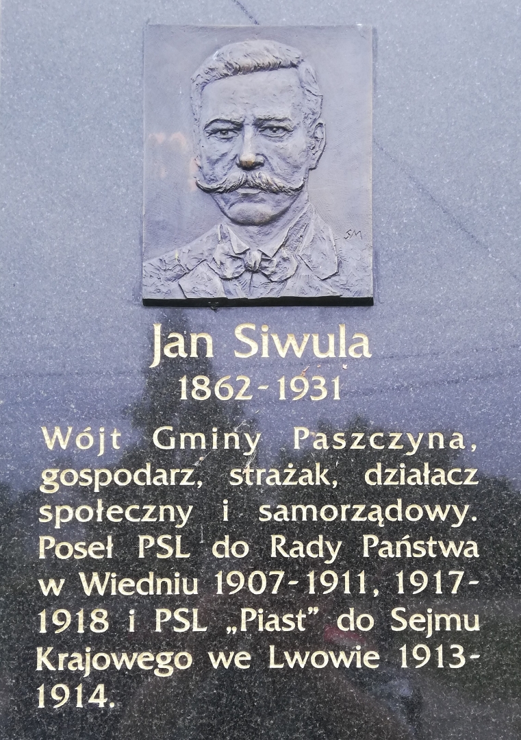 Portret posła Jana Siwuli - płaskorzeźba w Paszczynie. share Podziel się facebook google + twitter linkedin clipboard envelope print quote picture add × Cytowane źródła Cytowanie źródła on-line, czyli Internetowego Polskiego Słownika Biograficznego Portret posła Jana Siwuli - płaskorzeźba w Paszczynie., [online] Warszawa: Narodowy Instytut Audiowizualny [dostęp 27.02.2026]. Dostępny w internecie: http://www.biogramy.pl/a/foto/portret-posla-jana-siwuli-plaskorzezba-w-paszczynie Cytowanie wydania drukowanego, czyli Polskiego Słownika Biograficznego , Portret posła Jana Siwuli - płaskorzeźba w Paszczynie., [w:] Polski słownik biograficzny, t. , IPSBID: ipsb-fo-115485 × Wyślij link do strony E-mail odbiorcy wiadomości: To pole jest wymaganeWpisz poprawny adres e-mail Twój adres e-mail: To pole jest wymaganeWpisz poprawny adres e-mail Podgląd wiadomości, która zostanie wysłana: Witaj, [Tutaj podany Twój e-mail] poleca Ci treść z iPSB (internetowym Polskim Słowniku Biograficznym) Portret posła Jana Siwuli - płaskorzeźba w Paszczynie. × Dodaj do kolekcji wybierz kolekcję, do której chcesz dodać ten artykuł: lub wpisz nazwę nowej kolekcji, do której chcesz dodać ten artykuł: : To pole jest wymagane Dodaj do kolekcji Wybierz kolekcję Swoje kolekcje znajdziesz w profilu. Wystarczy kliknąć ikonę zębatego koła w górnym prawym rogu. Możesz je zobaczyć tu: moje kolekcje. × Dodaj do kolekcji Element został dodany do Twojej kolekcji. Swoje kolekcje możesz zobaczyć tu: moje kolekcje. × Dodaj do kolekcji Aby dodawać materiały do kolekcji musisz się zalogować. OPIS POSTACI POWIąZANE Fragment tablicy pamiątkowej na ścianie remizy straży pożarnej w Paszczynie (Woj. Podkarpackie). Fot.: Kaj Małachowski (FINA/iPSB), 28 sierpnia 2023. Postaci powiązane Jan Siwula 1862-01-25 - 1931-04-02 działacz ruchu ludowego więcej >> Zobacz zdjęcie w najwyższej jakości
