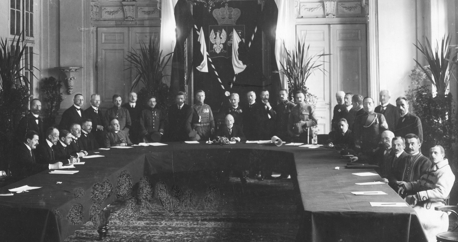Widoczni: Stefan Dziewulski, Ludwik Górski, Wojciech Rostworowski, Kazimierz Natanson, Stanisław Bukowiecki, ksiądz biskup Henryk Przeździecki, Wacław Niemojowski, Władysław Studnicki, Ludomir Grendyszyński, Włodzimierz Kunowski, Andrzej Maj, Błażej Stolarski, Michał Łempicki, Stanisław Janicki, Józef Kozłowski, Józef Żychliński, Adam Łuniewski, Ignacy Rosner, Józef Mikułowski-Pomorski, hrabia Lerchenfeld, P. Sokołowski, baron Konopka, Artur Śliwiński, Stefan Iszkowski, Józef Piłsudski, Bogdan Hutten-Czapski, Michał Kaczorowski, Franciszek Pius Radziwiłł, Stanisław Dzierzbicki, Paweł Jankowski. Fotografię wykonał Saryusz Wolski.