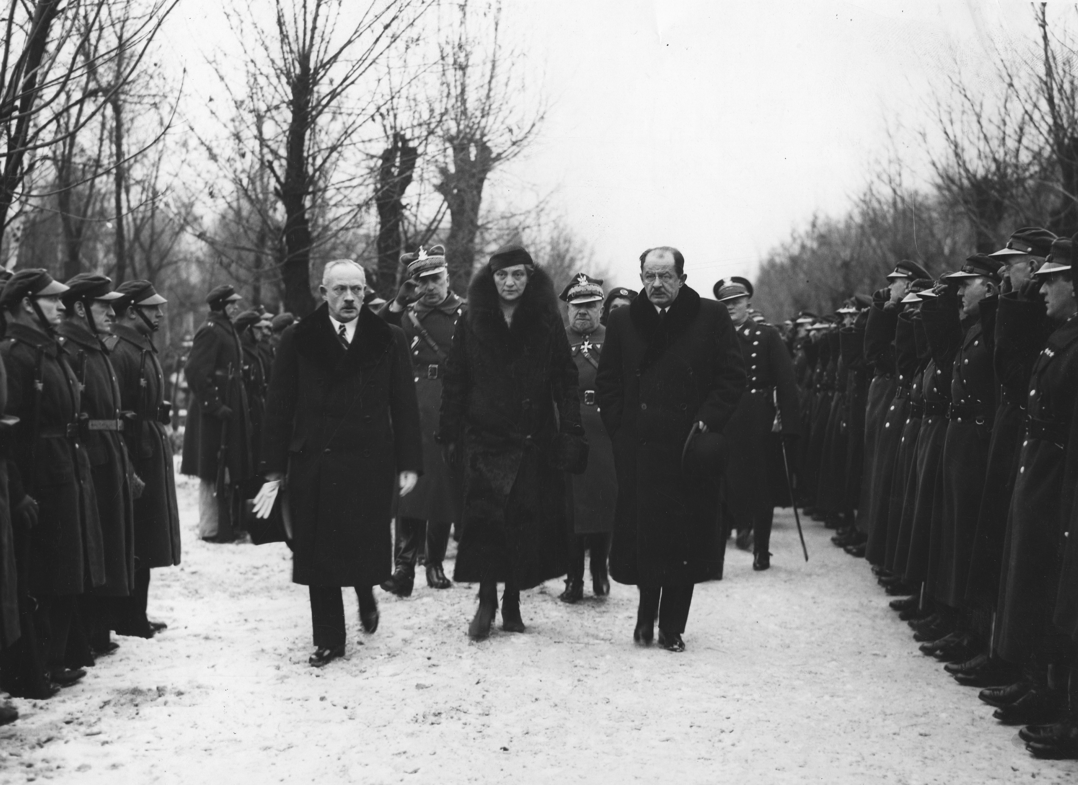 Uczestnicy uroczystości poświęcenia nagrobka generała brygady Władysława Jaxy-Rożena na Cmentarzu Powązkowskim w Warszawie. Widoczni m.in. marszałkowa Aleksandra Piłsudska, premier Leon Kozłowski (z prawej strony marszałkowej), mecenas Franciszek Paschalski (z lewej strony marszałkowej), generał Kazimierz Sosnkowski (z tyłu, między marszałkową a mecenasem Paschalskim), generał brygady Jakub Marian Krzemieński (z tyłu, między marszałkową a premierem Kozłowskim) oraz podpułkownik Adam Sokołowski (za premierem Kozłowskim).