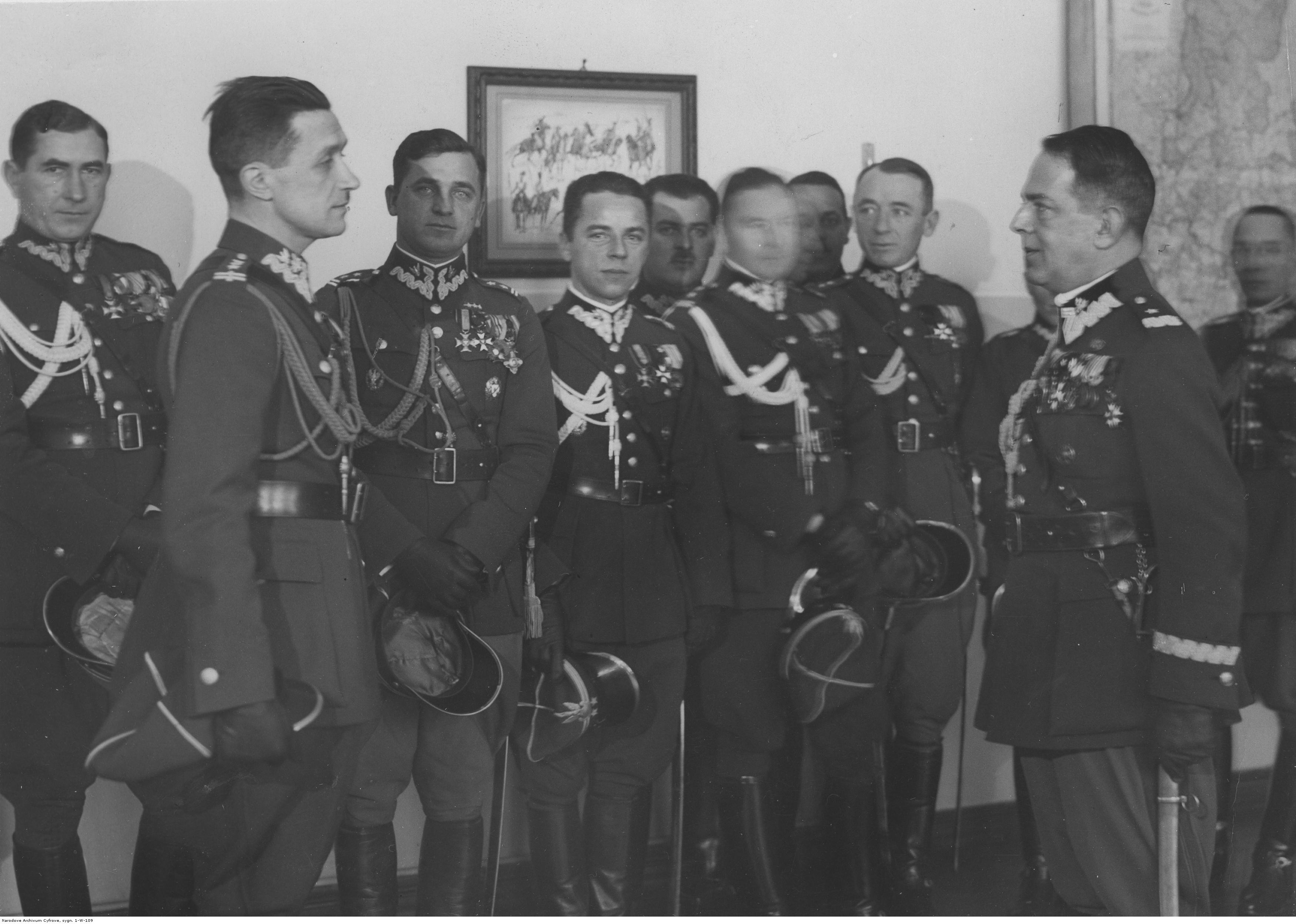 Grupa oficerów podczas uroczystości. Na pierwszym planie widoczni od lewej: płk Witold Wartha i gen. Janusz Gąsiorowski. Na drugim planie stoją m.in.: ppłk Tadeusz Munnich (3. z lewej), pułkownik Jan Karcz (na prawo za ppłk. Munnichem), ppłk Kazimierz Glabisz (7. z lewej).