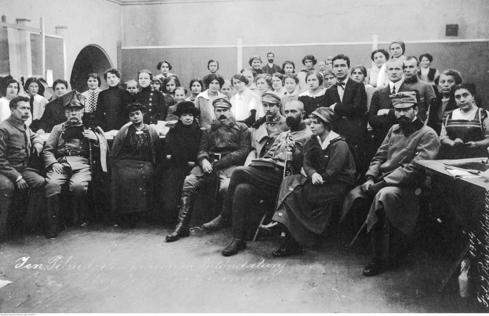 Siedzą na pierwszym planie od lewej: kierownik intendentury Trojanowski, Wacław Sieroszewski, założycielka intendentury Zofia Praussowa, Zaniewska, Józef Piłsudski, Tadeusz Kasprzycki, Walery Sławek, członkini Komitetu Wojskowego w Zakopanem Nowotnowa, komendant placu w Zakopanem Czaki.