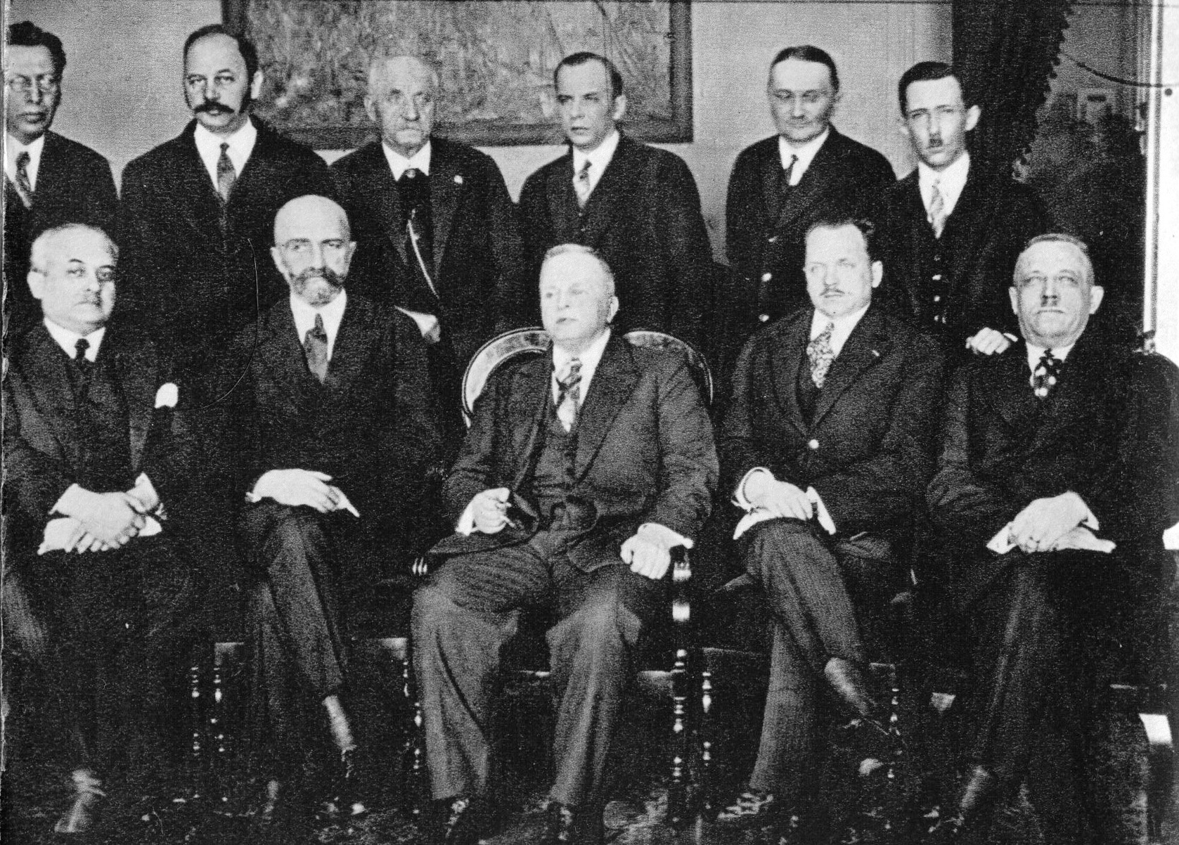 Od lewej siedzą: Hipolit Gliwic, Walery Sławek, Julian Szymański, Marian Zyndram-Kościałkowski, Walery Roman; stoją: Henryk Loewenherz, Karol Polakiewicz, Jakub Bojko, Zdzisław Stroński, Zdzisław Lechnicki, Adam Piasecki.