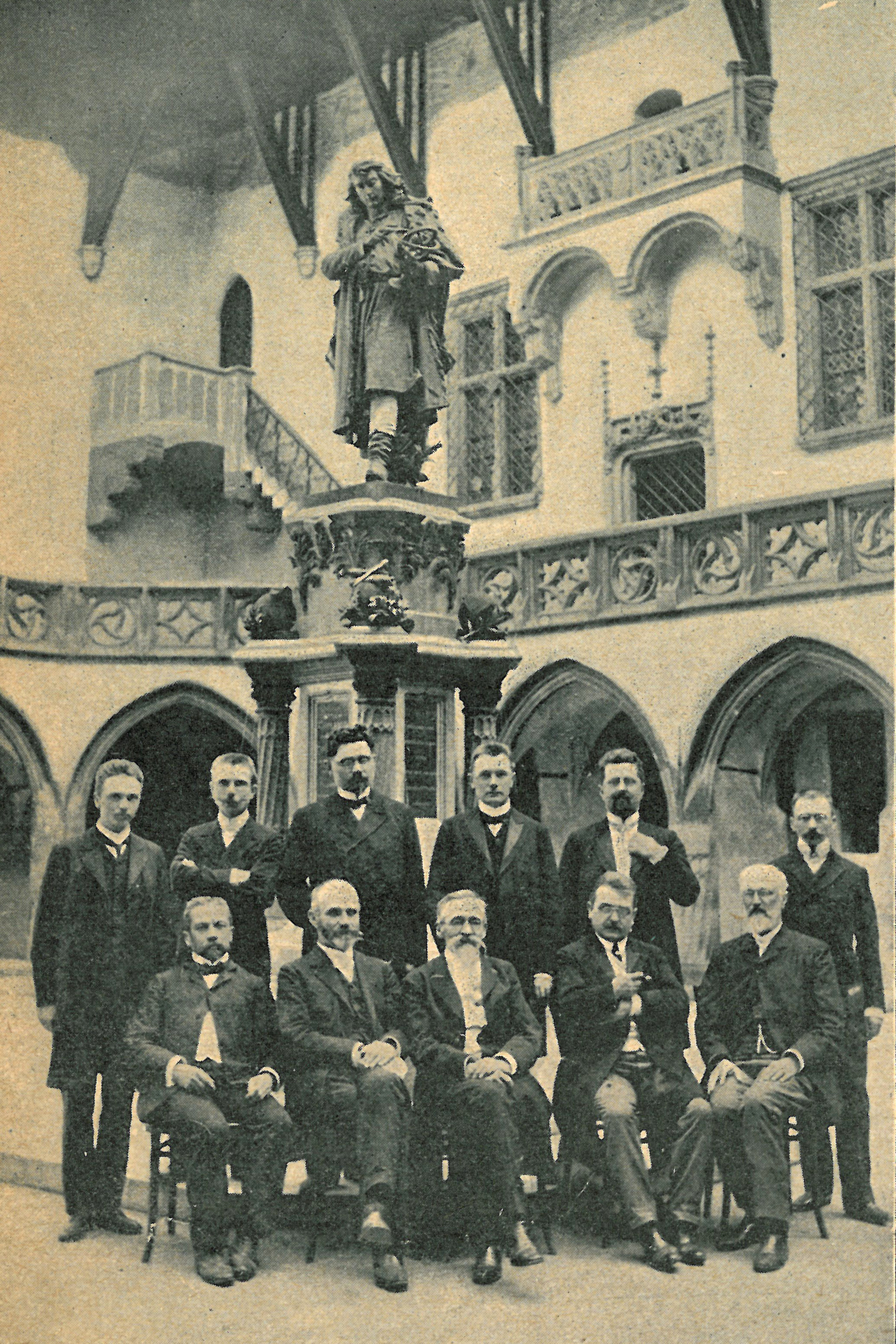 Pierwszy rząd od lewej ku prawej: Adam Antoni Kryński, Jan Baudouin de Courtenay, Tadeusz Korzon, Józef Kallenbach, Stanisław Ptaszycki. Drugi rząd od lewej: Ignacy Stein, Jan Magiera, Witold Nowodworski, Wiktor Czermak, Bronisław Gubrynowicz, Jan Łoś.