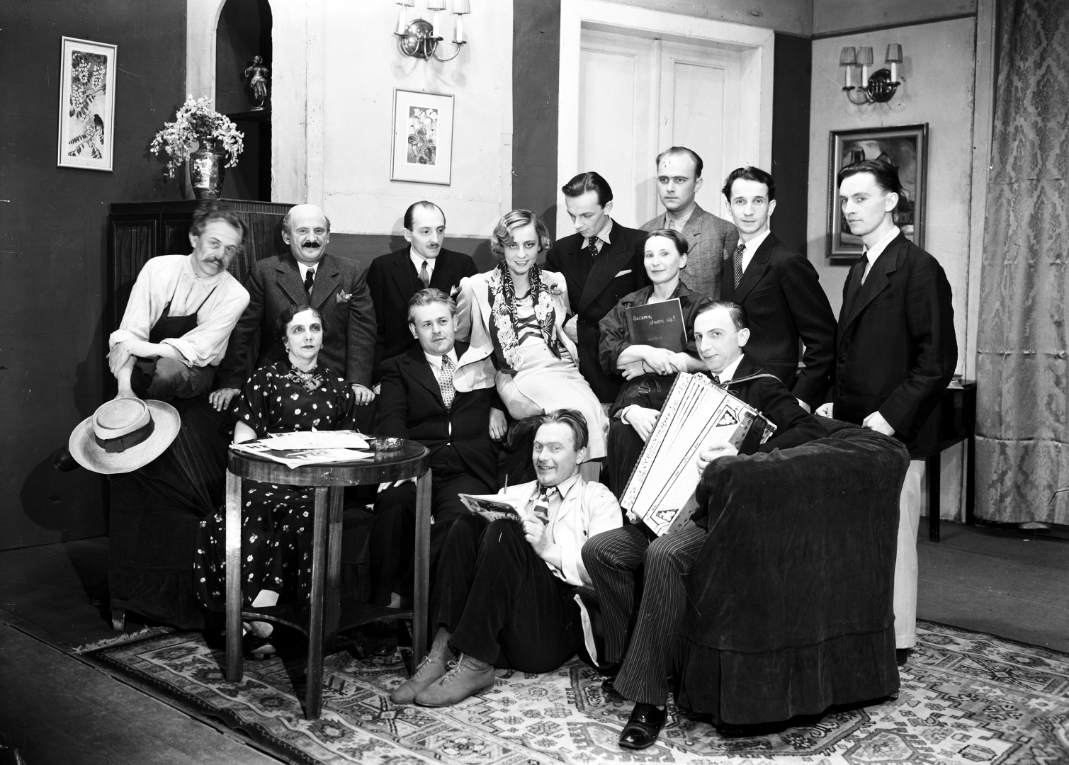Autor sztuki Anatol Krakowiecki w otoczeniu artystów. Widoczni m.in. w górnym rzędzie: Władysław Staszewski jako Witalis, ogrodnik (1. z lewej), Konstanty Pągowski (2. z lewej), Wojciech Wojtecki (4. z prawej), Tadeusz Kondrat jako Julek Gonda (2. z prawej). Siedzą: Zuzanna Zalewska jako Marcelina Dereniowa (1. z lewej), Krystyna Ankwicz-Szyjkowska jako Zosia (w centrum fotografii), Karol Wyrwicz-Wichrowski jako Franek (1. z prawej) i Władysław Woźnik (na podłodze).
