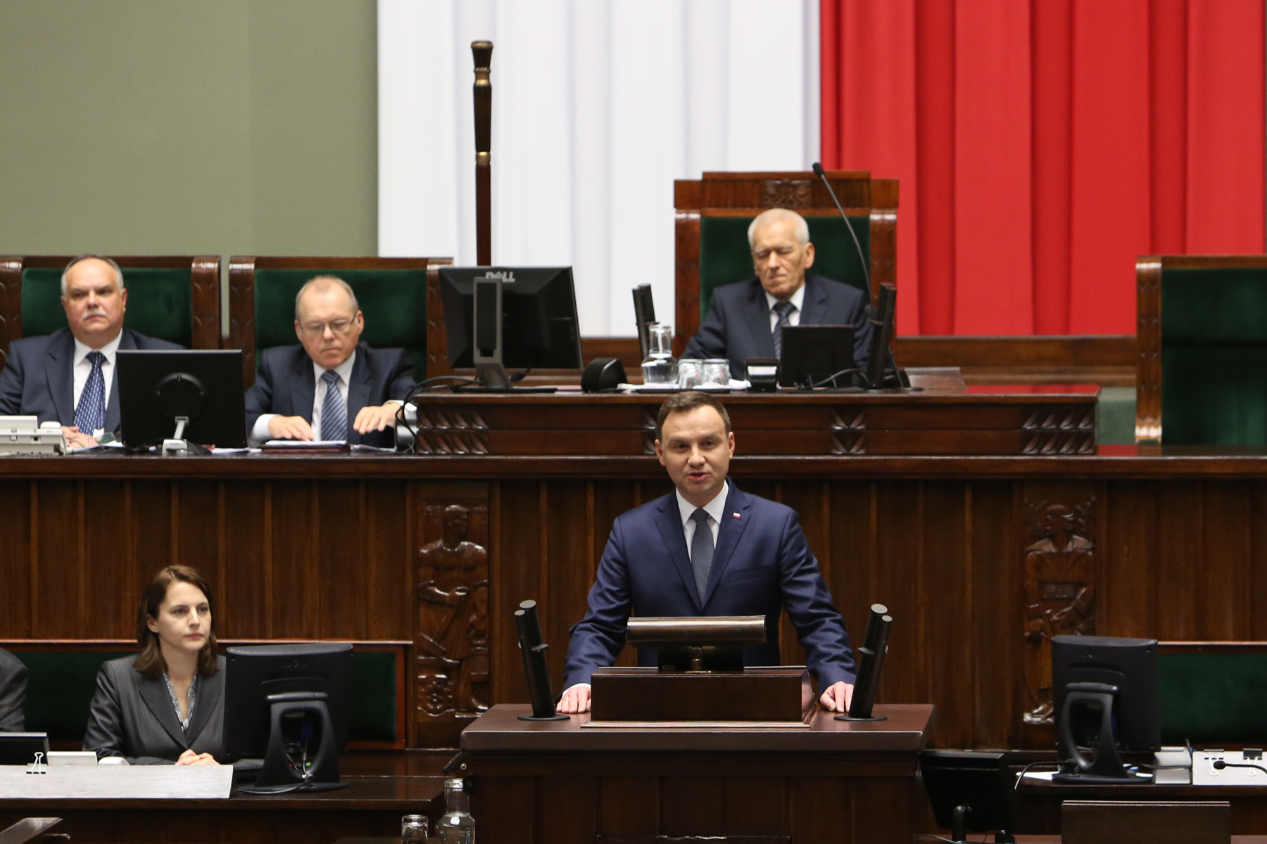 Przemówienie prezydenta Andrzeja Dudy na inauguracyjnym posiedzeniu Sejmu VIII kadencji 12.11.2015 r., [online] Warszawa: Narodowy Instytut Audiowizualny [dostęp 27.02.2026]. Dostępny w internecie: http://www.biogramy.pl/a/foto/przemowienie-prezydenta-andrzeja-dudy-na-inauguracyjnym-posiedzeniu-sejmu-viii-kadencji-12112015-r