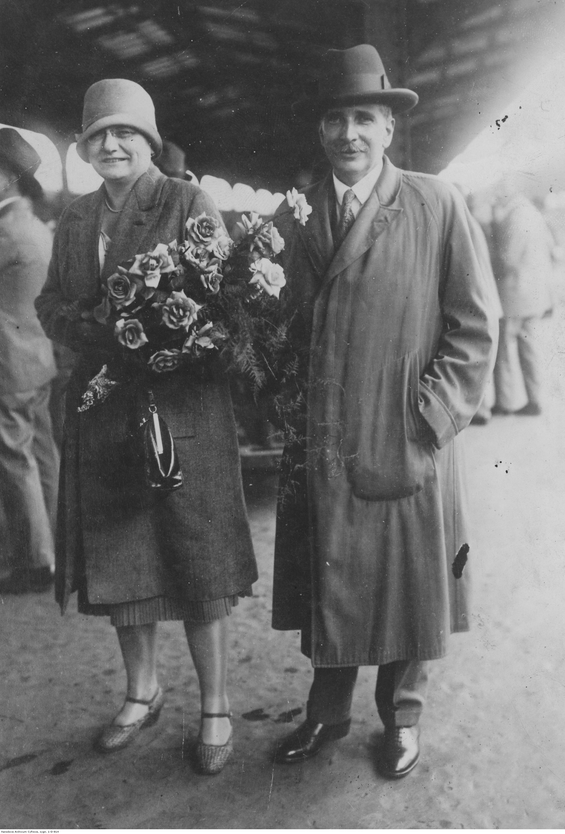 Zdzisław Okęcki z małżonką na peronie dworca w Tokio.
