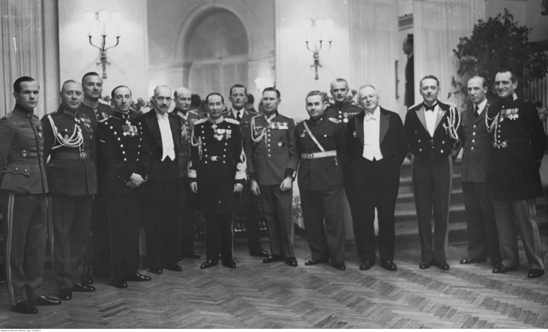 Attache wojskowi uczestniczący w przyjęciu. Widoczni od lewej: Finlandii mjr von Essen, Łotwy płk. Kluge, Szwecji mjr Toren, Włoch płk Adolfo Roero di Cortanze, Francji gen. Felix Musse, pełnomocnik attache wojskowego Niemiec kpt. von Brockdorff, Japonii Shigeru Sawada, Estonii ppłk Raidna, Niemiec płk. Bogislav von Studnitz, Turcji mjr Kodża, Czechosłowacji płk Kumposzt, prof. Julian Szymański, Stanów Zjednoczonych Winslow, pełnomocnik attache wojskowego ZSRR mjr Zawiałow i pełnomocnik attache wojskowego Francji kpt. Kłobukowski.