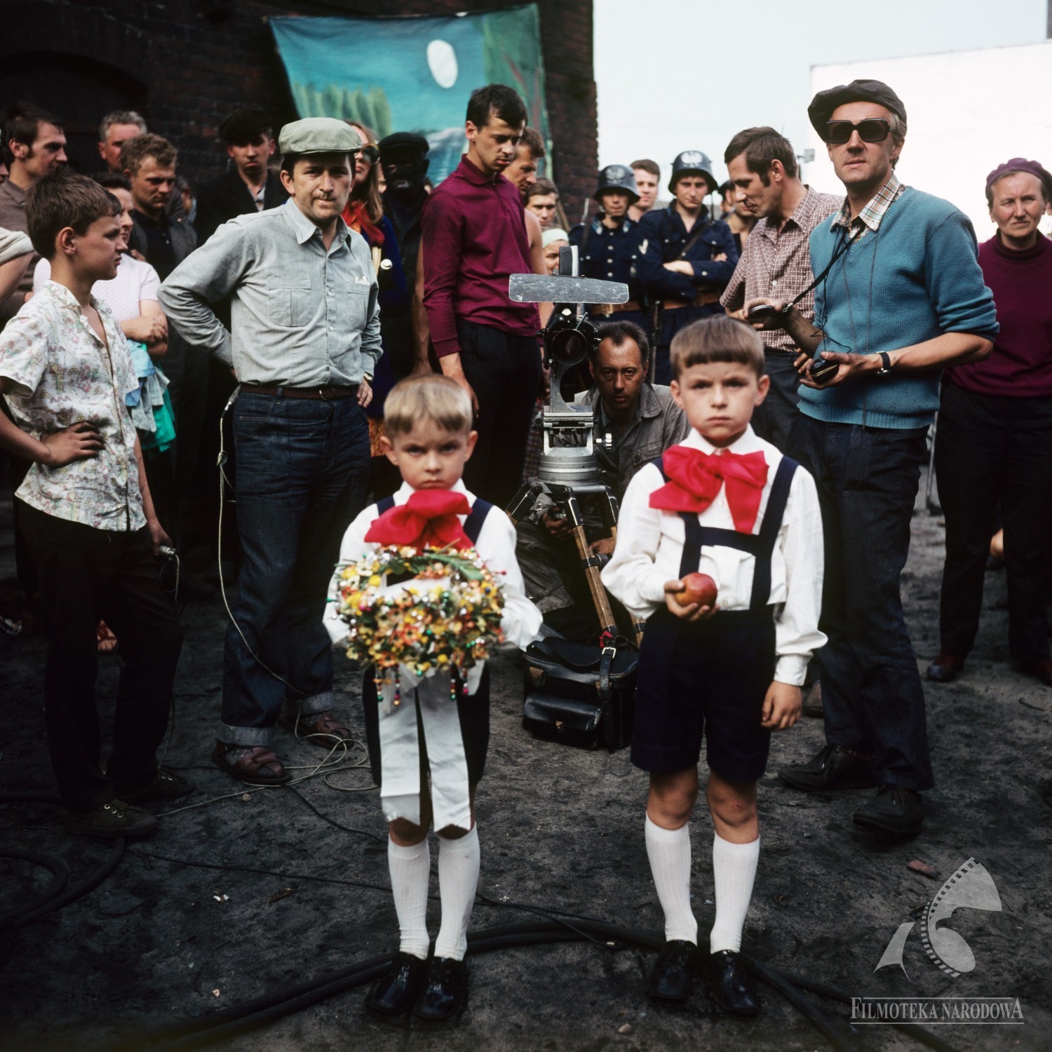 Na zdjęciu widoczni są m.in.: reżyser Kazimierz Kutz, operator kamery Andrzej Granau, operator Stanisław Loth oraz dwaj mali aktorzy Mariusz Pluciński (chłopiec z lewej) i Jarek Pluciński (chłopiec z prawej).