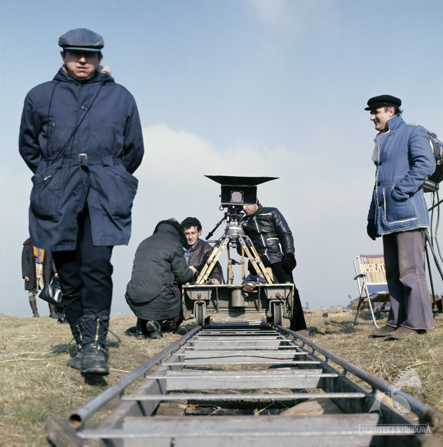 Na zdjęciu widoczni są: operator Wiesław Zdort (z lewej), operatorz kamery Stanisław Szymanski i Jacek Malipan oraz reżyser Henryk Kluba (z prawej).