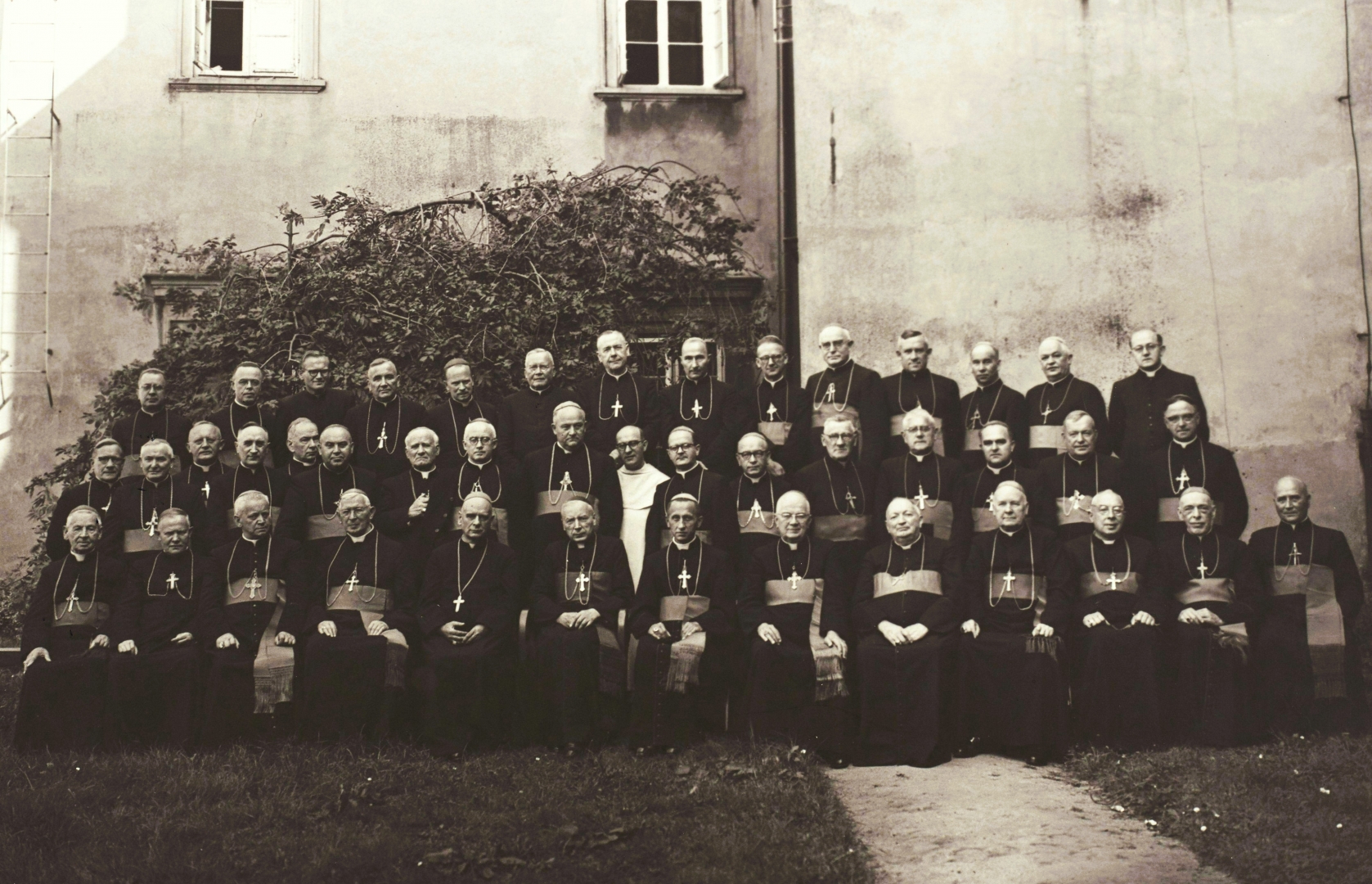 W pierwszym rzędzie widoczni są biskupi (od lewej): Wojciech Tomaka, Michał Klepacz, Czesław Kaczmarek, Franciszek Barda, Eugeniusz Baziak, Stefan Wyszyński, Antoni Baraniak, Zygmunt Choromański, Tadeusz Paweł Zakrzewski, Jan Lorek, Kazimierz Kowalski, Czesław Falkowski, Piotr Kałwa. W drugim rzędzie od lewej: Wacław Majewski, Franciszek Korszyński, Andrzej Wronka, Franciszek Jop, Juliusz Bieniek, Bolesław Kominek, Ignacy Świrski, Zdzisław Goliński, Lucjan Bernacki, ojciec Paulin, Antoni Pawłowski, Franciszek Jedwabski, Stanisław Czajka, Piotr Dudziec, Bernard Czapliński, Karol Pękala, Edward Muszyński. W trzecim rzędzie od lewej: Władysław Suszyński, Stanisław Jakiel, Karol Wojtyła, Tomasz Wilczyński, Herbert Bednorz, Adam Sawicki, Michał Krzywicki, Józef Drzazga, Walenty Wójcik, Jan Fondaliński, Jan Jaroszewicz, Piotr Gołębiowski, Aleksander Mościcki, Wilhelm Pluta.