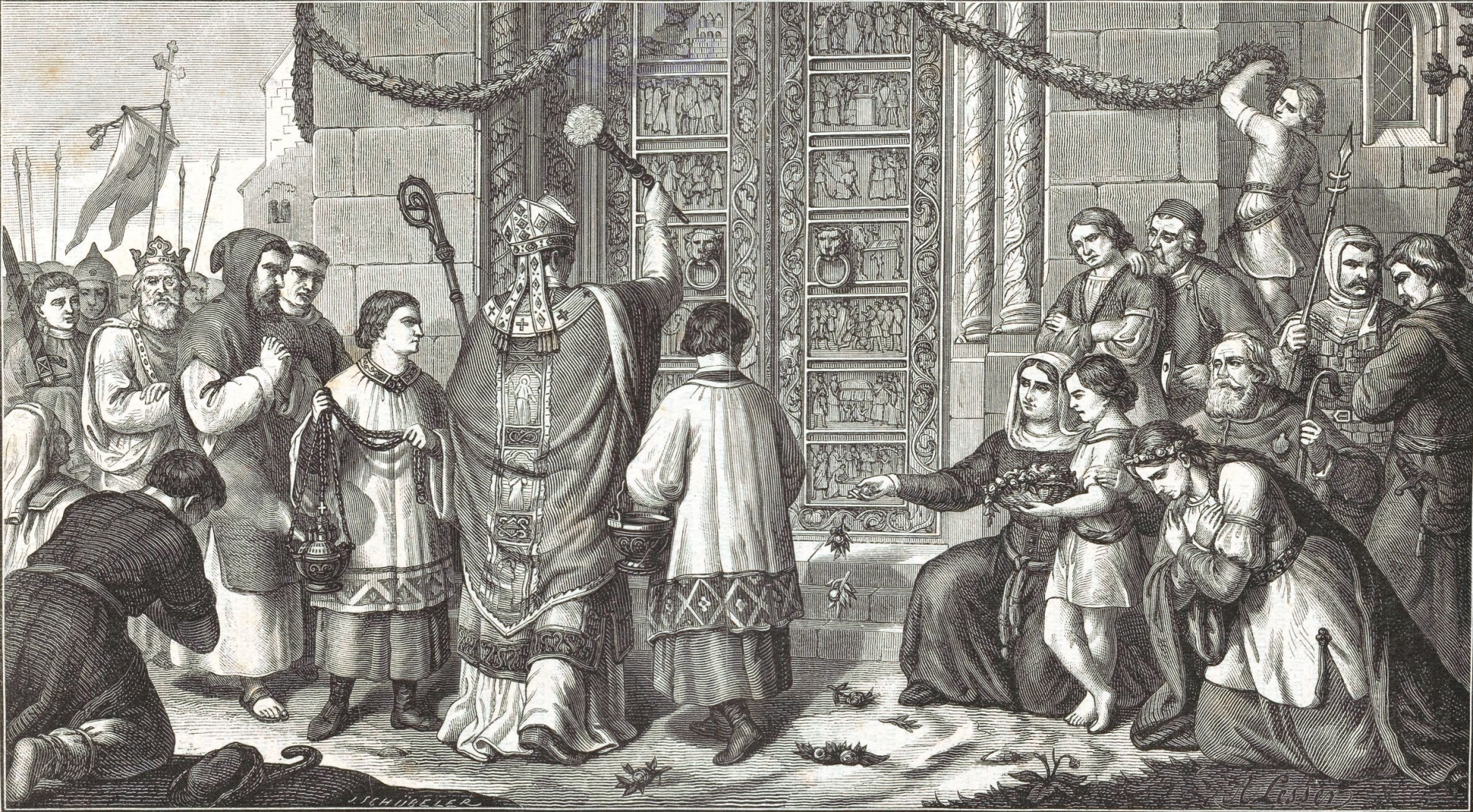 Reprodukcja rysunku Aleksandra Lessera "Poświęcenie drzwi w katedrze gnieźnienskiej"., [online] Warszawa: Narodowy Instytut Audiowizualny [dostęp 13.04.2026]. Dostępny w internecie: http://www.biogramy.pl/a/foto/reprodukcja-rysunku-aleksandra-lessera-poswiecenie-drzwi-w-katedrze-gnieznienskiej