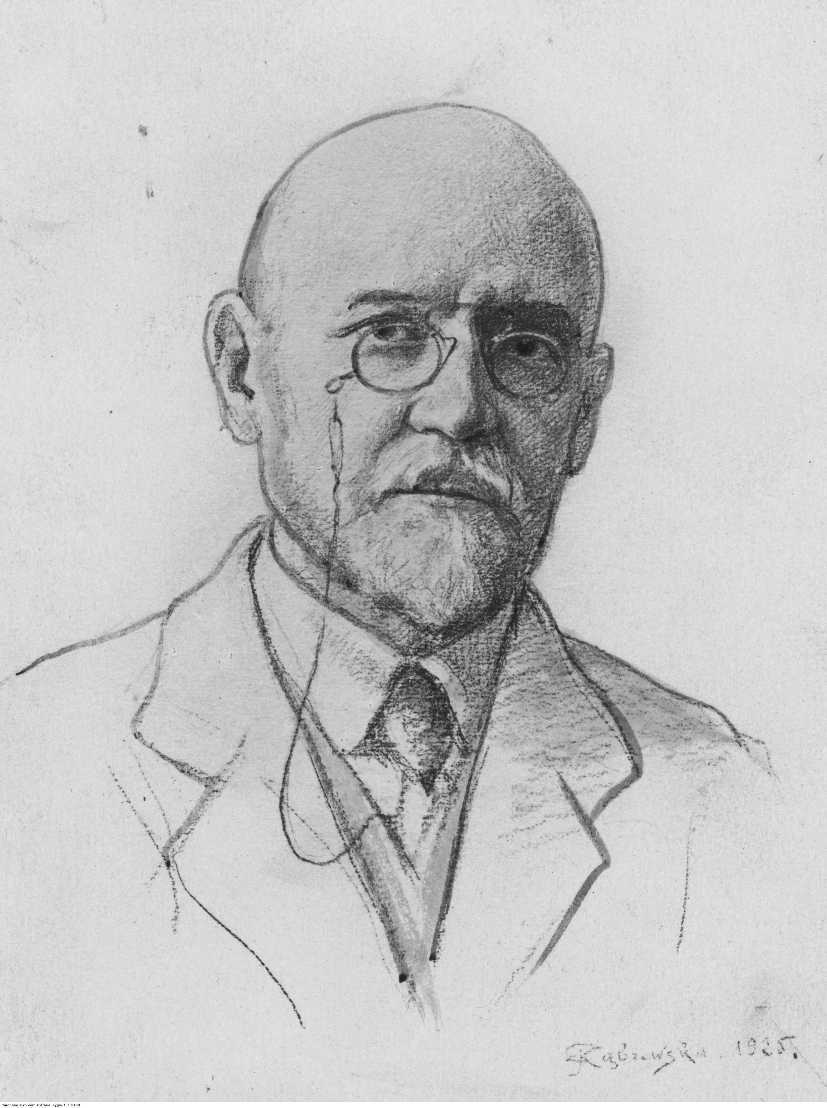 , Rysunek artystki malarki Kądzewskiej z 1925 roku przedstawiający portret profesora Uniwersytetu Jagiellońskiego Jerzego Mycielskiego., [w:] Polski słownik biograficzny, t. ,