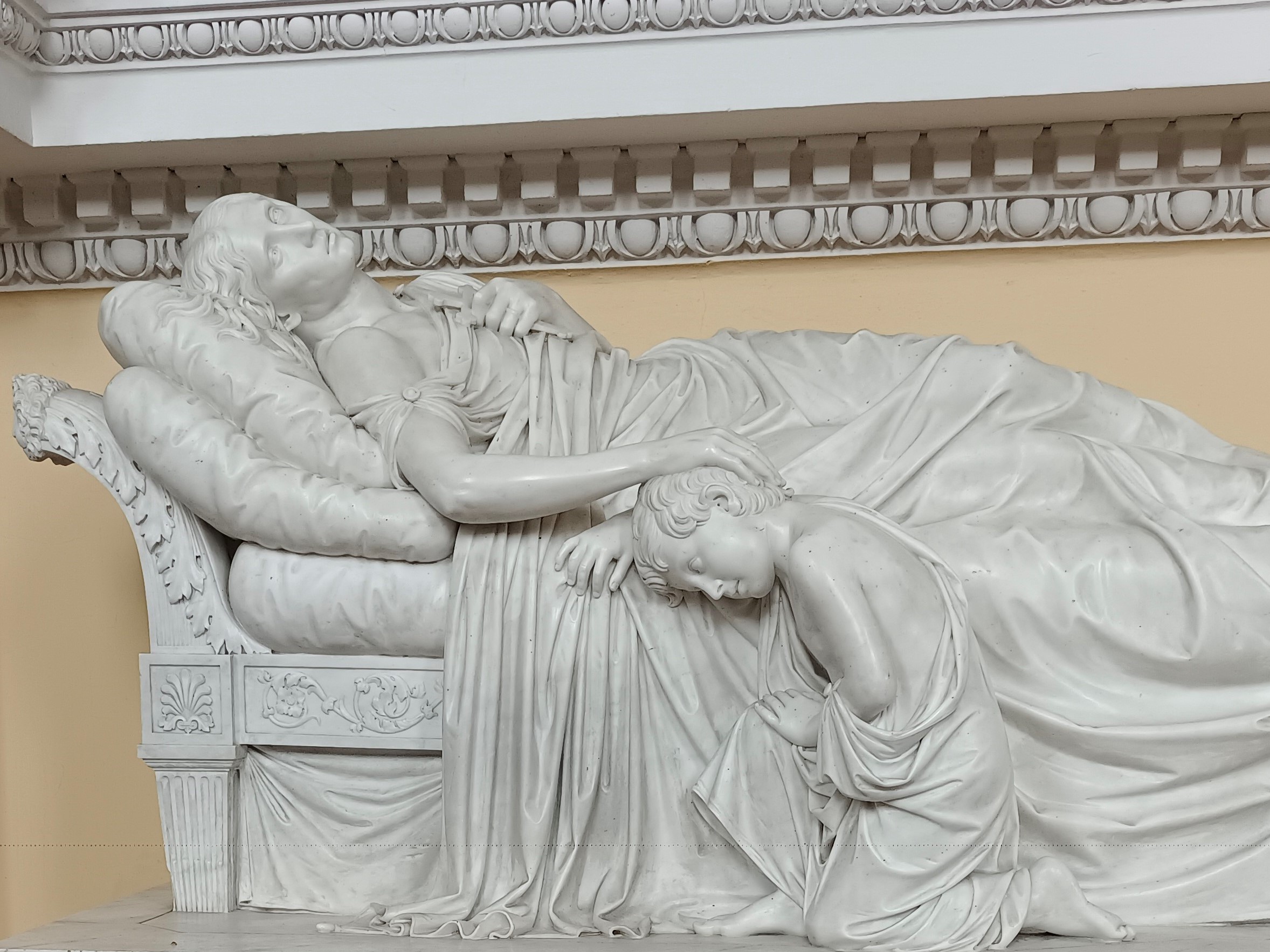 Pomnik został wykonany w 1841 roku przez Luigi Pampalloniego na zamówienie męża zmarłej Wincentego Krasińskiego. Ukazuje scenę śmierci matki poety, przy której łożu klęczy syn, na którego głowie spoczywa ręka matki. To przedstawienie zaproponował rzeźbiarzowi sam Zygmunt Krasiński. Nawiązuje ono do sceny matki z Orciem w "Nie-Boskiej Komedii".
