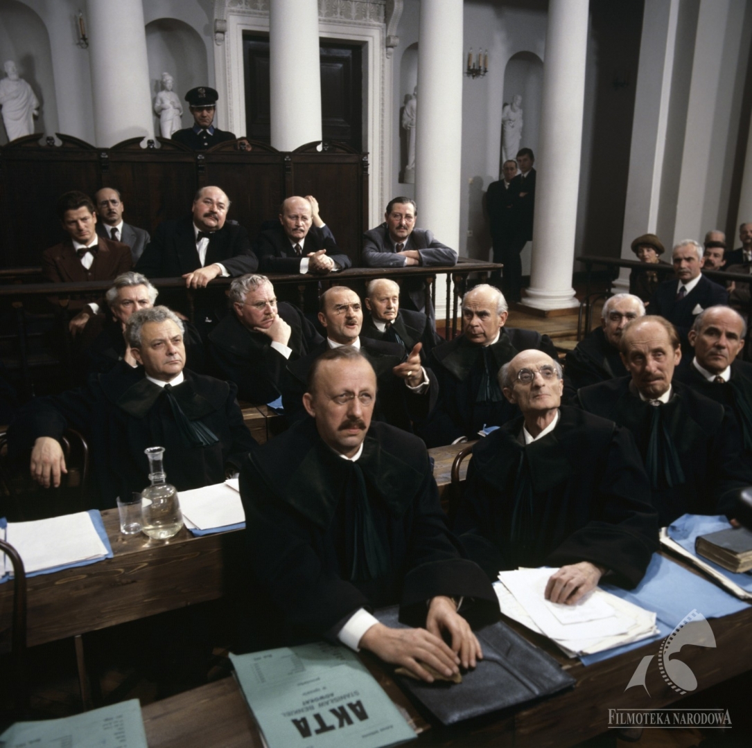 Na zdjęciu widoczni są aktorzy: Włodzimierz Skoczylas, Włodzimierz Boruński, Bolesław Płotnicki, Zygmunt Maciejewski, Juliusz Berger, Wiesław Drzewicz, Janusz Kłosiński, Ryszard Bacciarelli, Jan Orsza-Łukaszewicz, Gabriel Nehrebecki, Jerzy Złotnicki, Włodzimierz Wiszniewski, Zbigniew Kryński, Eugeniusz Robaczewski i Leopold Matuszczak.
