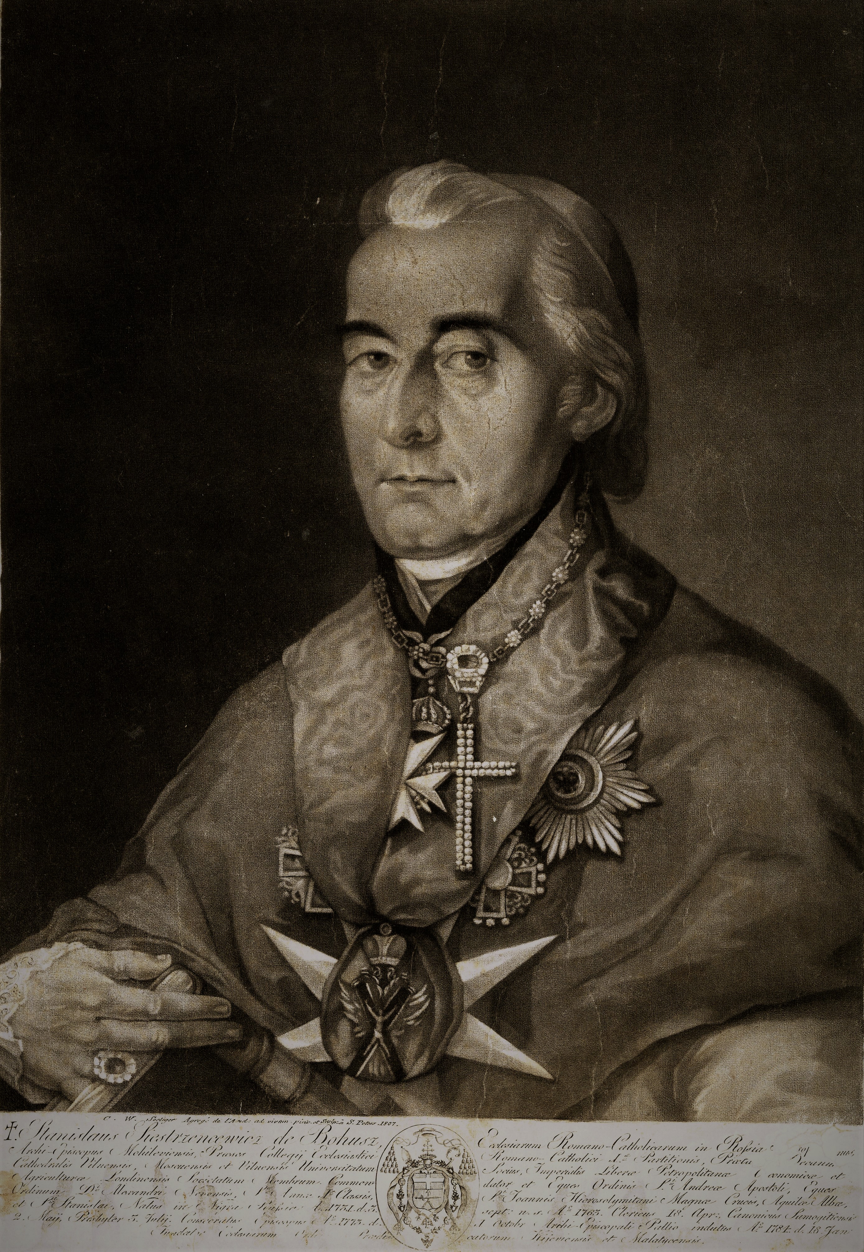 "Stanislaus Siestrzencewicz de Bohusz Ecclesiarum Romano-Catholicarum, in Rossia Metropolitanus Archi-Episcopus Mohileviensis [...]" Karla Wilhelma Seeligera., [online] Warszawa: Narodowy Instytut Audiowizualny [dostęp 26.02.2026]. Dostępny w internecie: http://www.biogramy.pl/a/foto/stanislaus-siestrzencewicz-de-bohusz-ecclesiarum-romano-catholicarum-in-rossia-metropolitanus-archi-episcopus-mohileviensis-karla-wilhelma-seeligera
